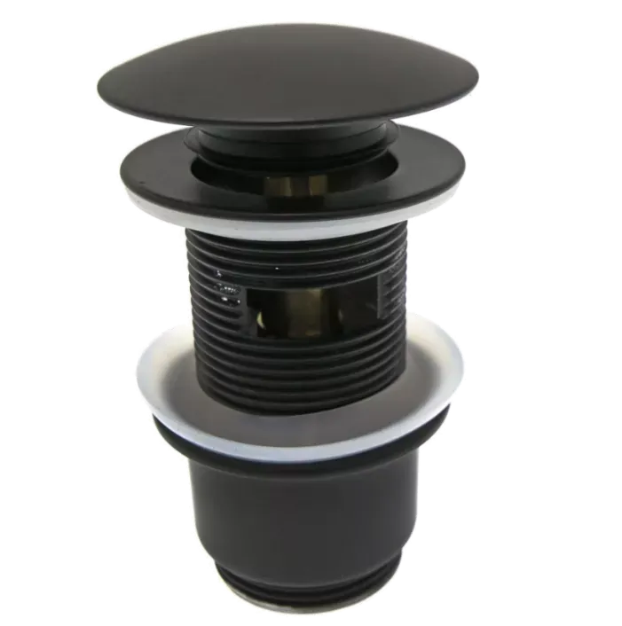 Донный клапан click-clack с переливом короткий 1 1/4" cfp черный хром брашированный remer