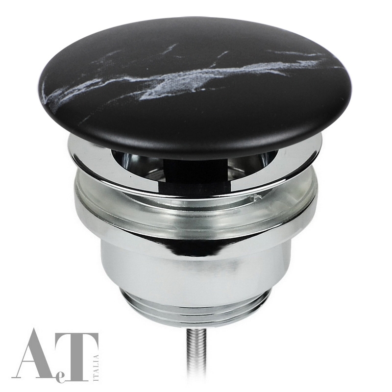 Сток для раковины AeT со свободным сливом, цвет хром, керамика цвет черный матовый с эффектом мрамора