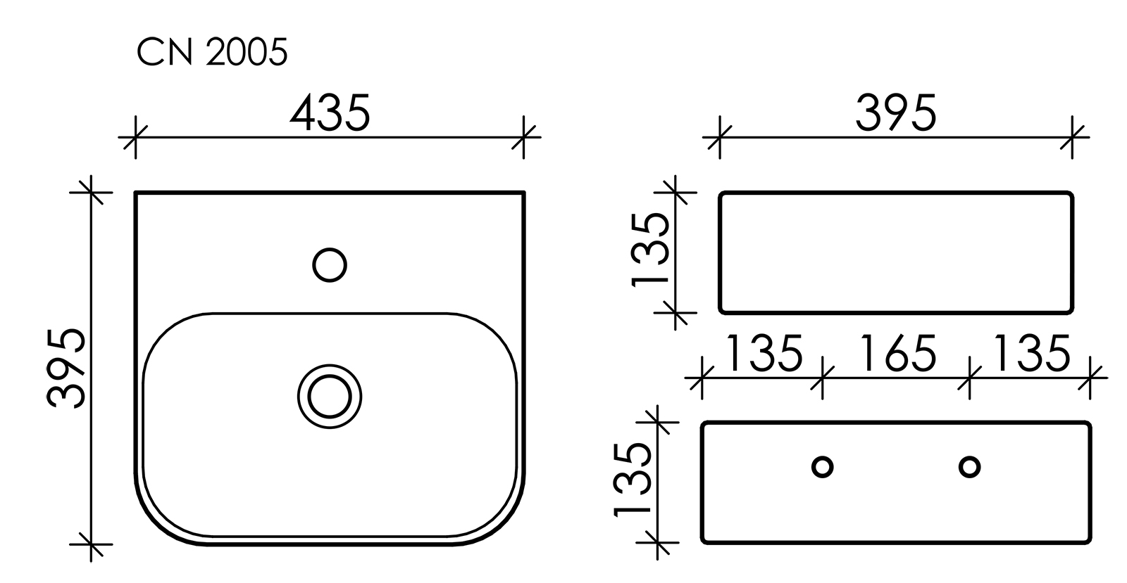 Умывальник aura с 1 отверстием для смесителя, без перелива 430x390x135мм