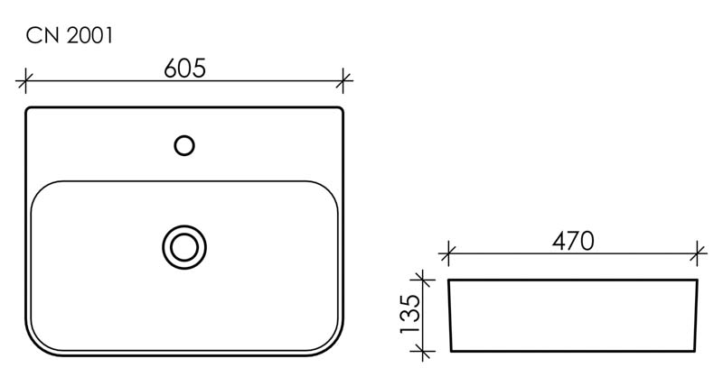 Умывальник aura с 1 отверстием для смесителя, без перелива 610x480x140мм