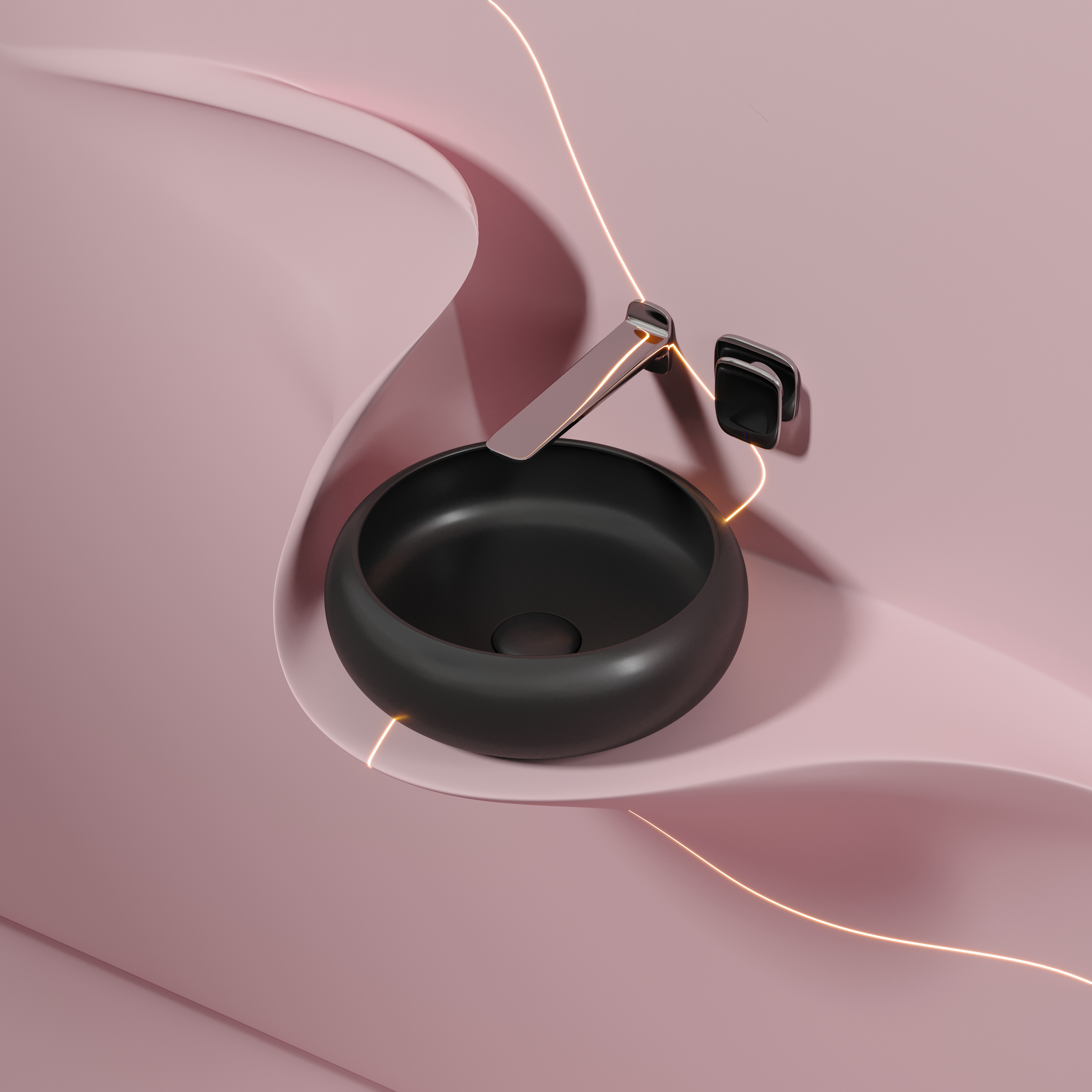 Умывальник чаша накладная круглая (цвет черный матовый) element 360x360x120мм