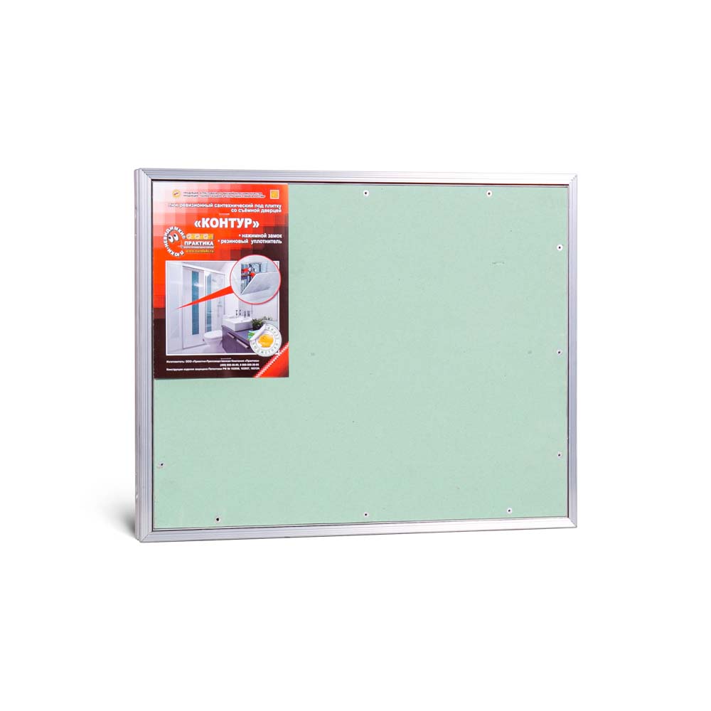 Скрытый люк 50х40 см серии «Контур», устанавливается в сантехнические шкафы, а также под ванну, в проемы с шириной от 500 мм и высотой от 400 мм. Используется для доступа к шаровым кранам, гребенкам, счетчикам воды, редукторам давления, спрятанным под плиткой.