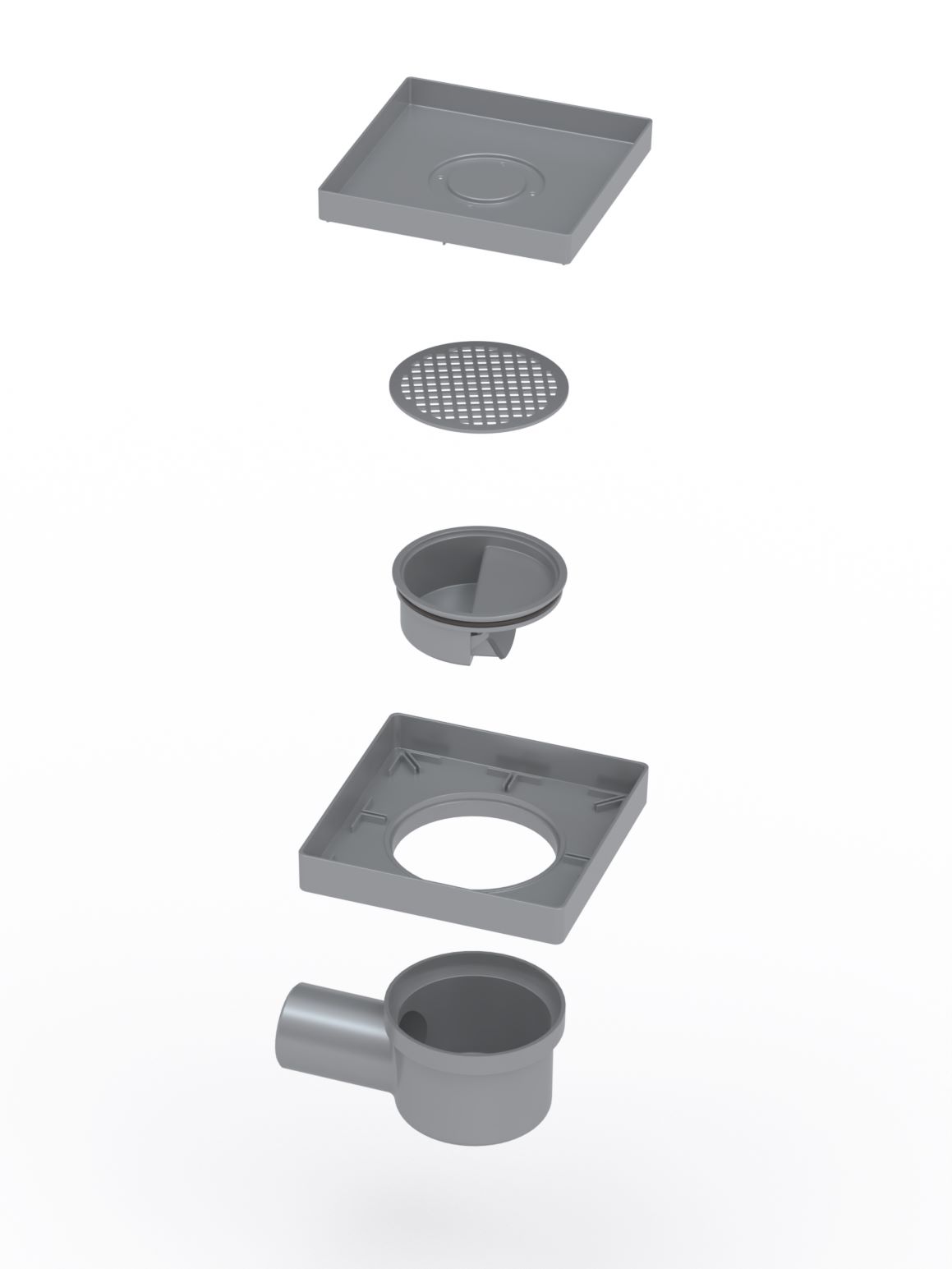 Корпус PP, горизонтальный выпуск D50, монтаж 360°