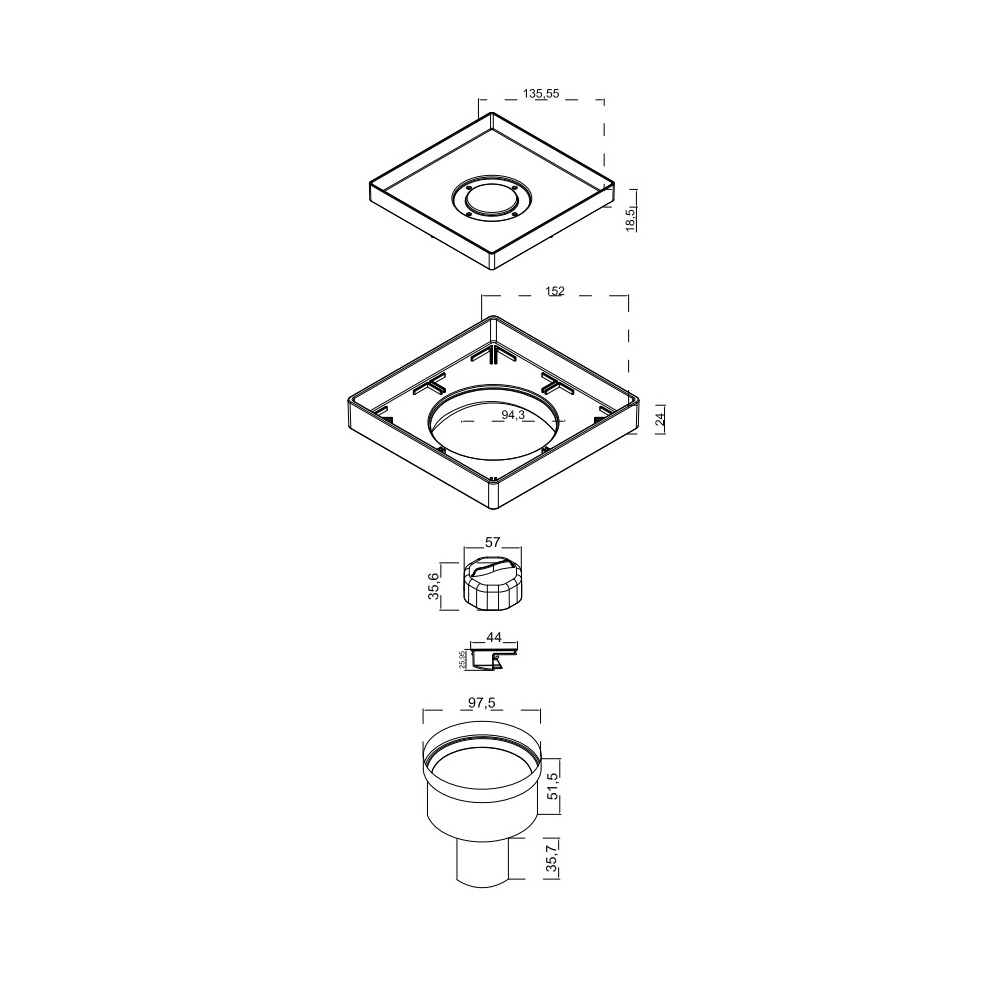 Трап berges водосток напольный trend keramik 150*150 под керамическую плитку, d50 вертикальный