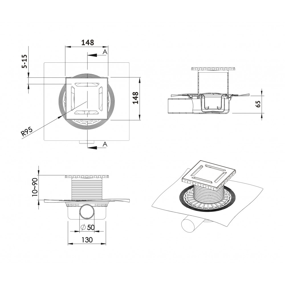 • Корпус трапа с интегрированной гидроизоляционной мембраной, гарантирующей герметичность.