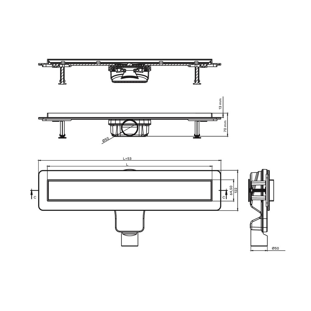 Удобный и легкий монтаж за счет вращающегося на 360° сифона и регулируемых по высоте ножек. Минимальная монтажная высота 59 мм. Сифон с боковым выпуском D50, S-образной самопромывной конструкцией, высокой пропускной способностью 48 л/мин. Комбинированный затвор защитит от запаха из канализации.
