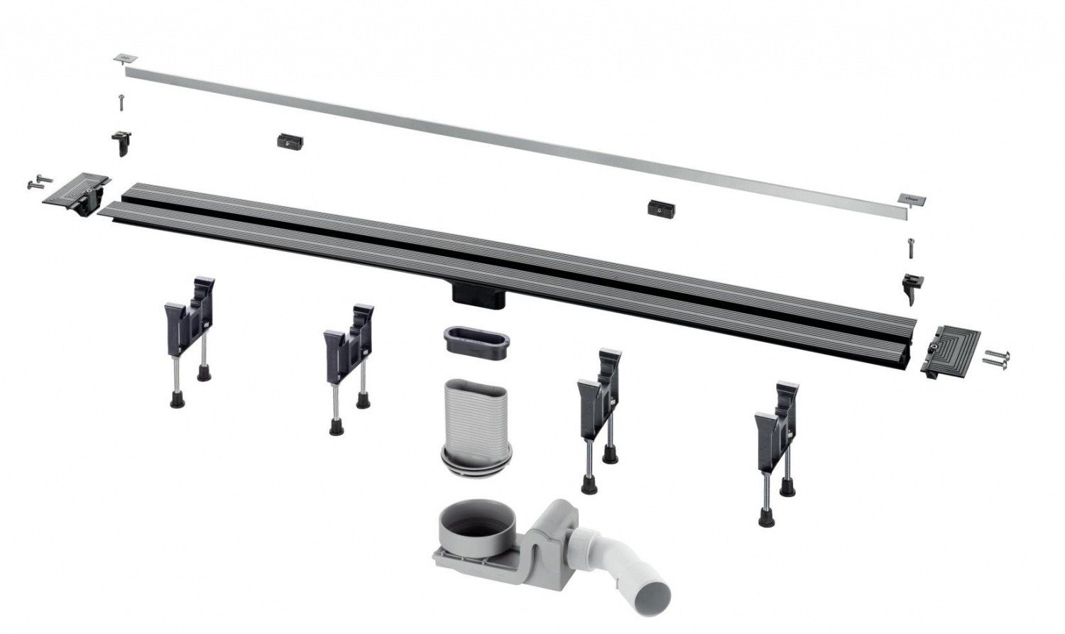 Основным преимуществом этого дренажного канала является встроенный сифон с функцией самоочищения, который предотвращает засоры и обеспечивает бесперебойную работу системы водоотведения. Регулируемое по высоте крепление для дизайн-вставки позволяет точно выравнивать лоток относительно финишного покрытия пола. Компенсатор высоты и фланец для закрепления гидроизоляции гарантируют долговечность конструкции и защиту от протечек. Товар поставляется с шаблоном для укорочения, что значительно упрощает монтажные работы для профессиональных сантехников.