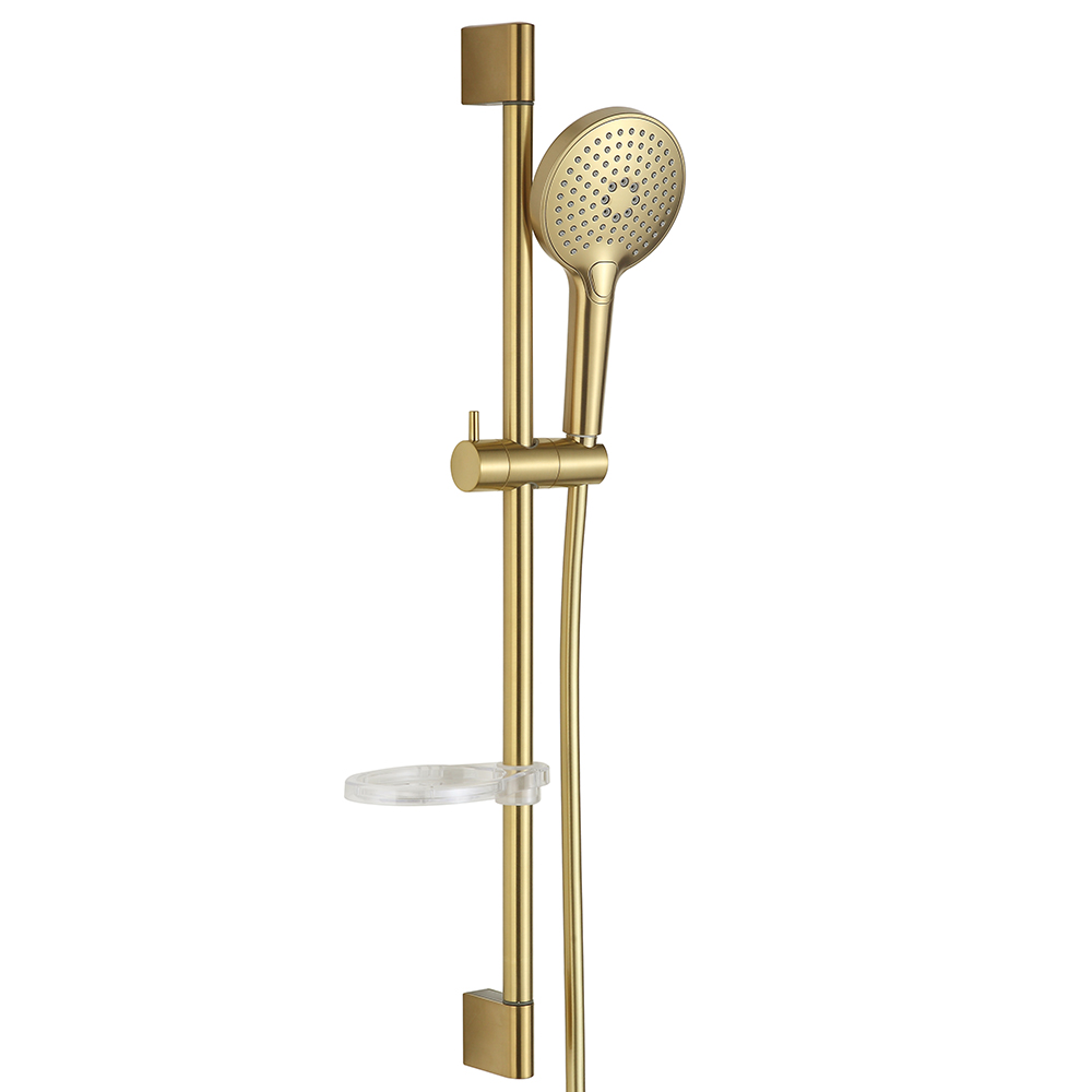 Aqm8101gg душевой гарнитур h=790мм, ø120 мм, 3 режима, мыльница, шланг 1500мм, glossy gold
