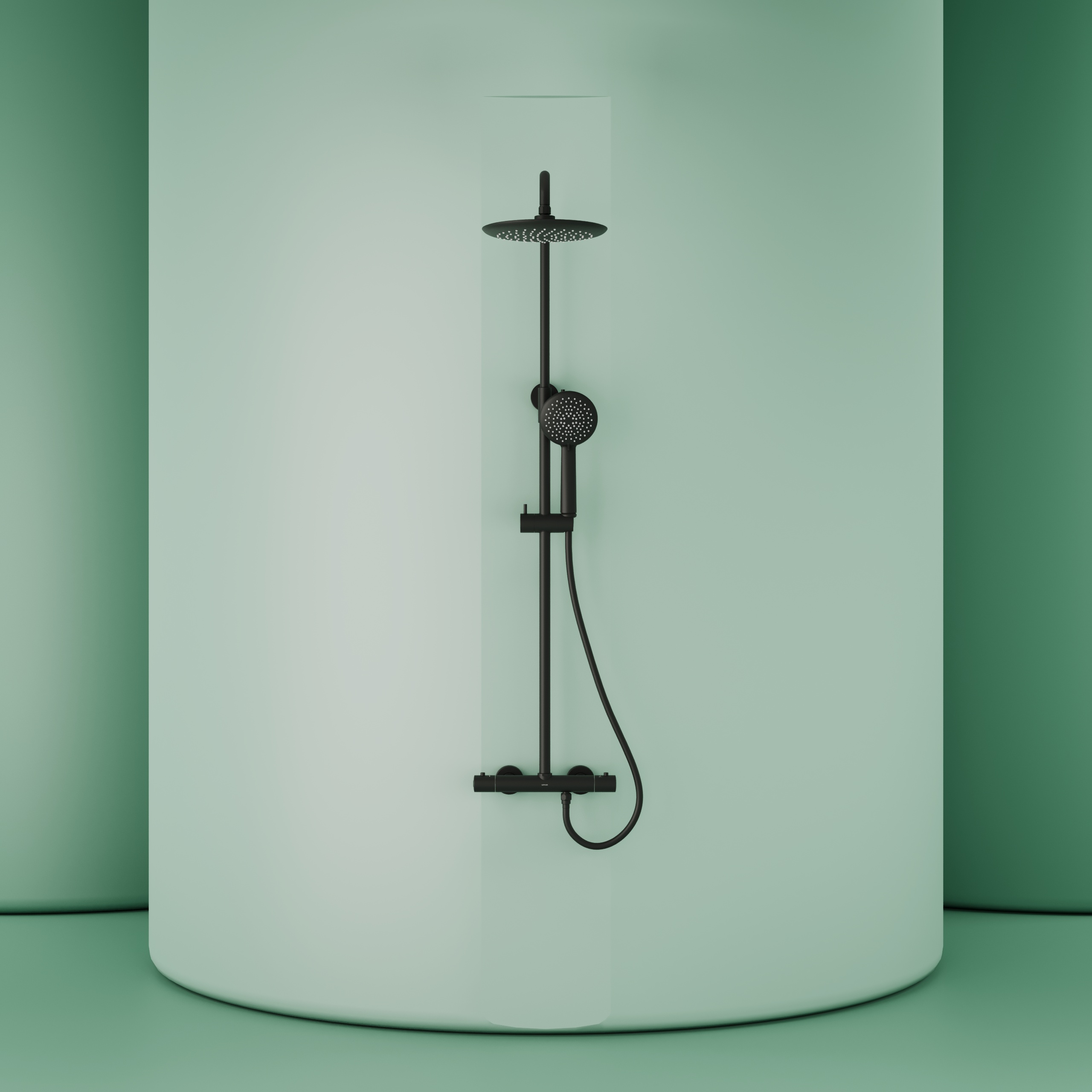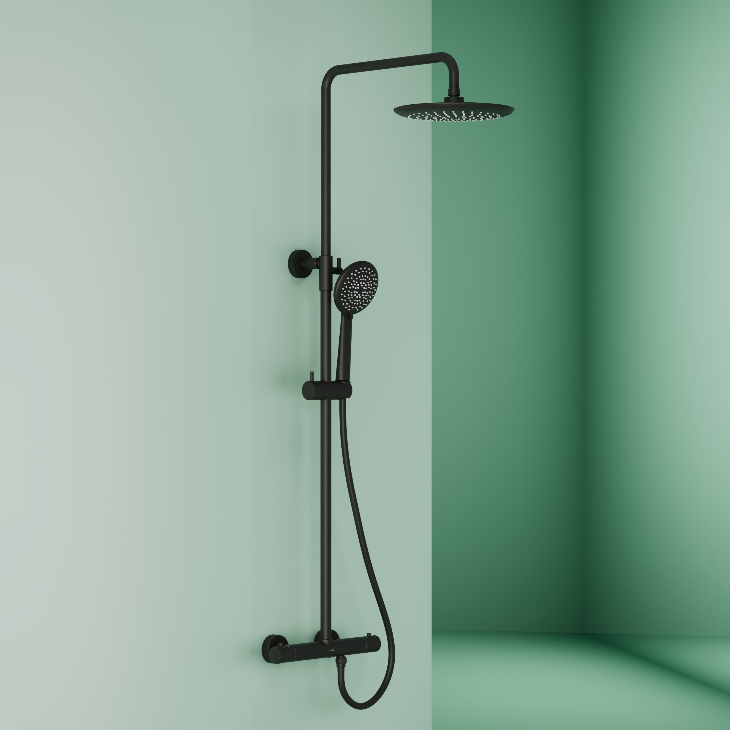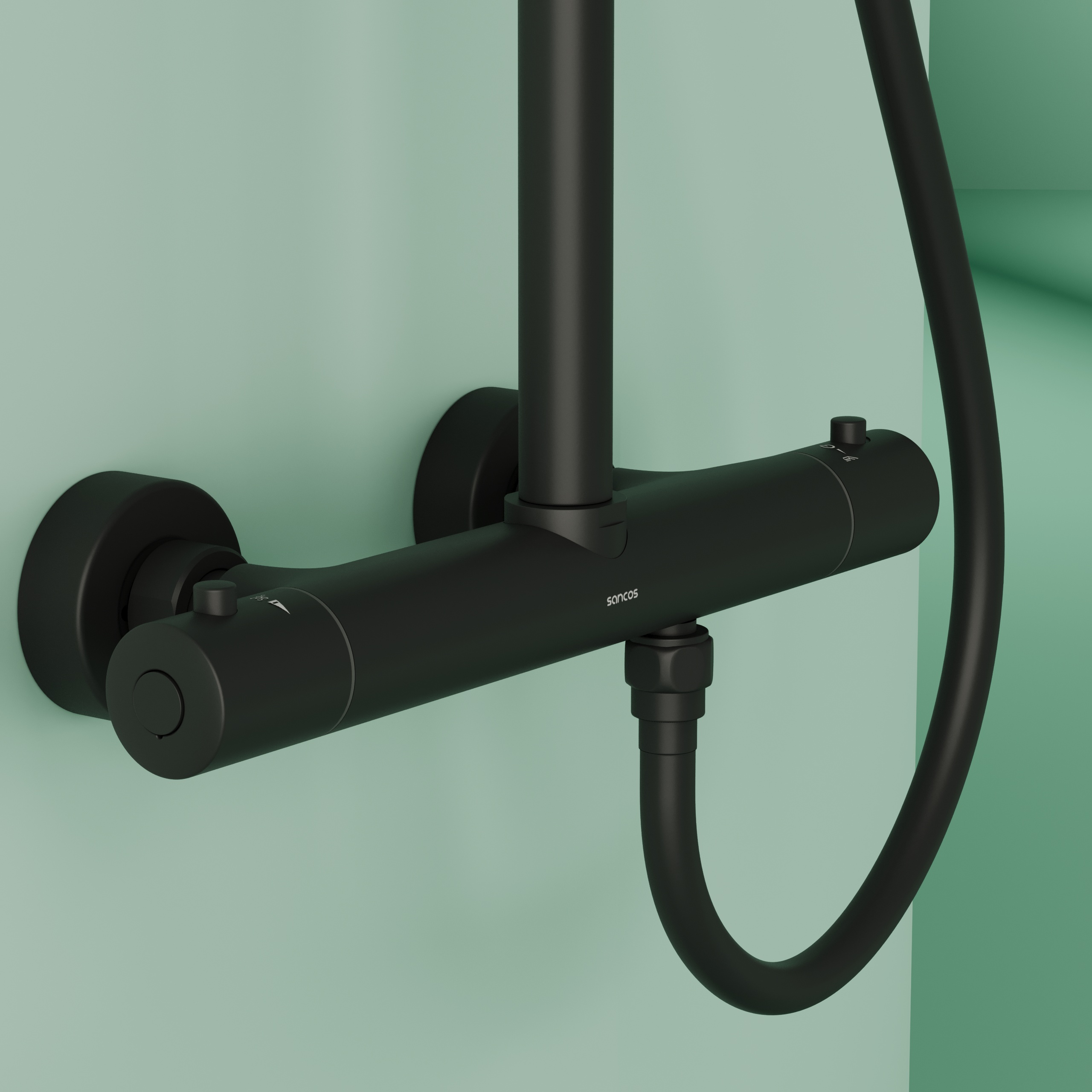 Душевая стойка sancos game для душа с термостатическим смесителем, верхним и ручным душем, цвет черный матовый, арт. sc3002mb