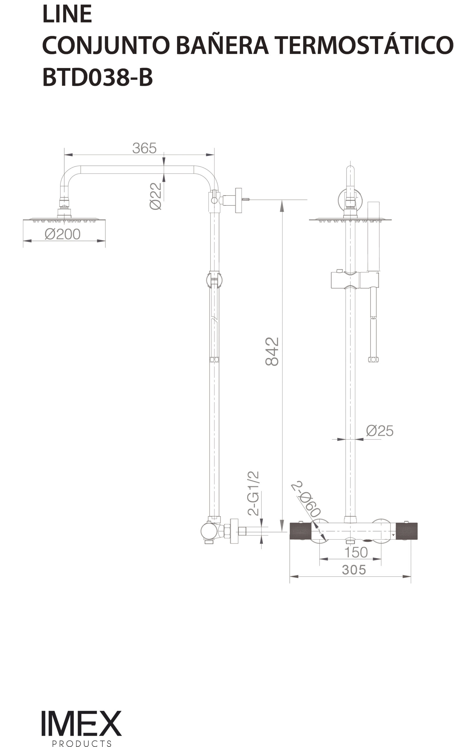 Душевая система термостатическая настенная для ванны/душа с изливом верхним душем и лейкой imex line btd038-b chrome