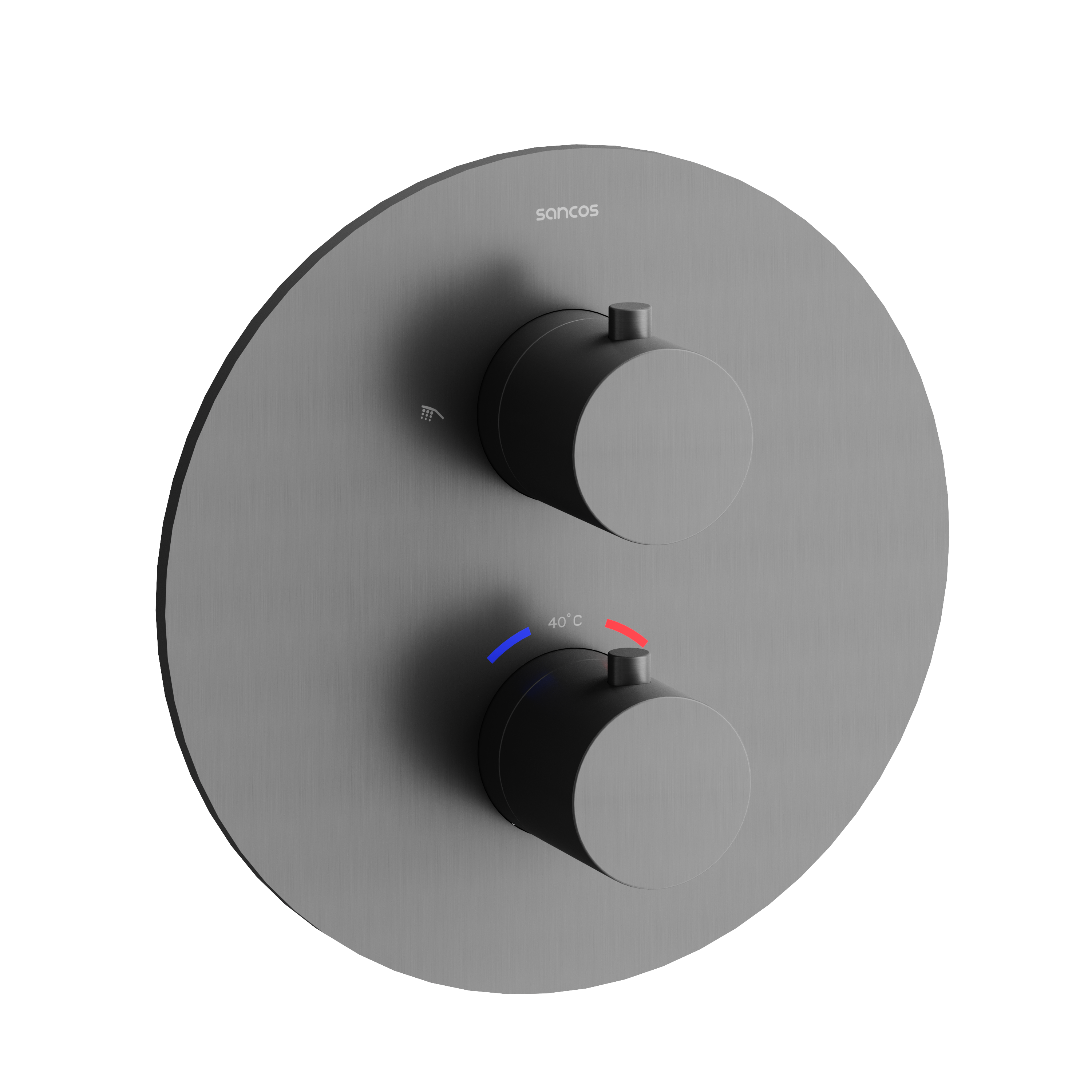 Душевой комплект с термостатом sancos etna, с внутренней частью, вороненая сталь арт. sc9010gg