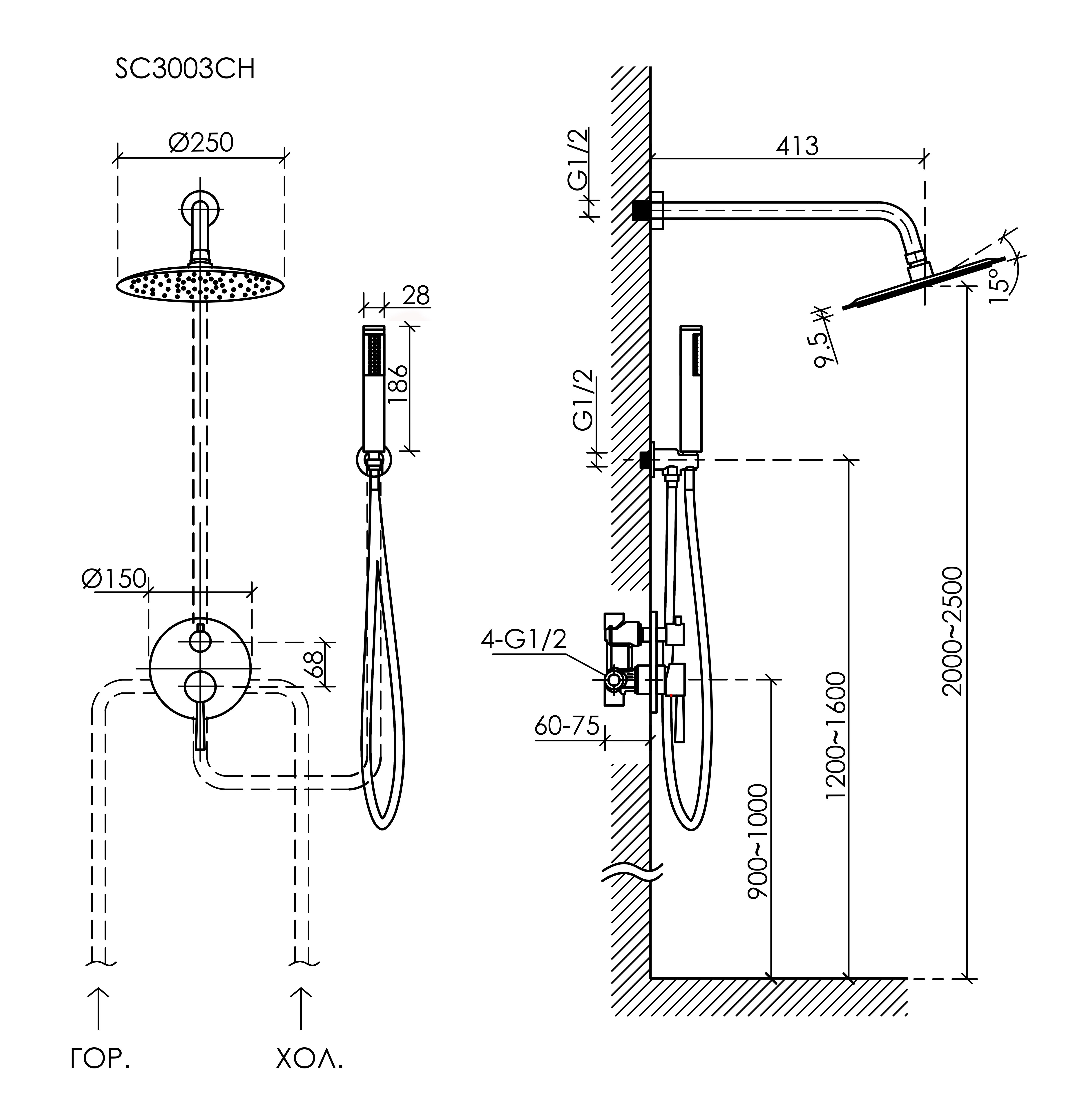 Душевой комплект sancos select встраиваемый для душа, цвет хром, арт. sc3003ch