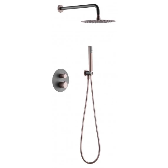 Смеситель для душа термостатический скрытого монтажа готовый комплект верхний душ ø25cm imex line gtd038/gc matt gray/champagne
