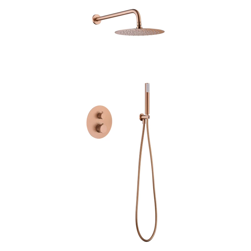 Смеситель для душа термостатический скрытого монтажа готовый комплект верхний душ ø25cm imex line gtd038/orc brushed rose gold pvd