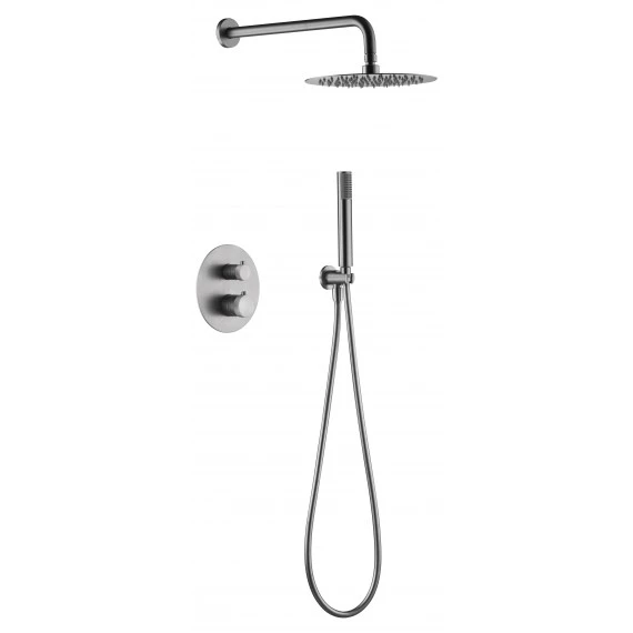 Смеситель для душа термостатический скрытого монтажа готовый комплект верхний душ ø25cm imex line gtd038/nq brushed nickel