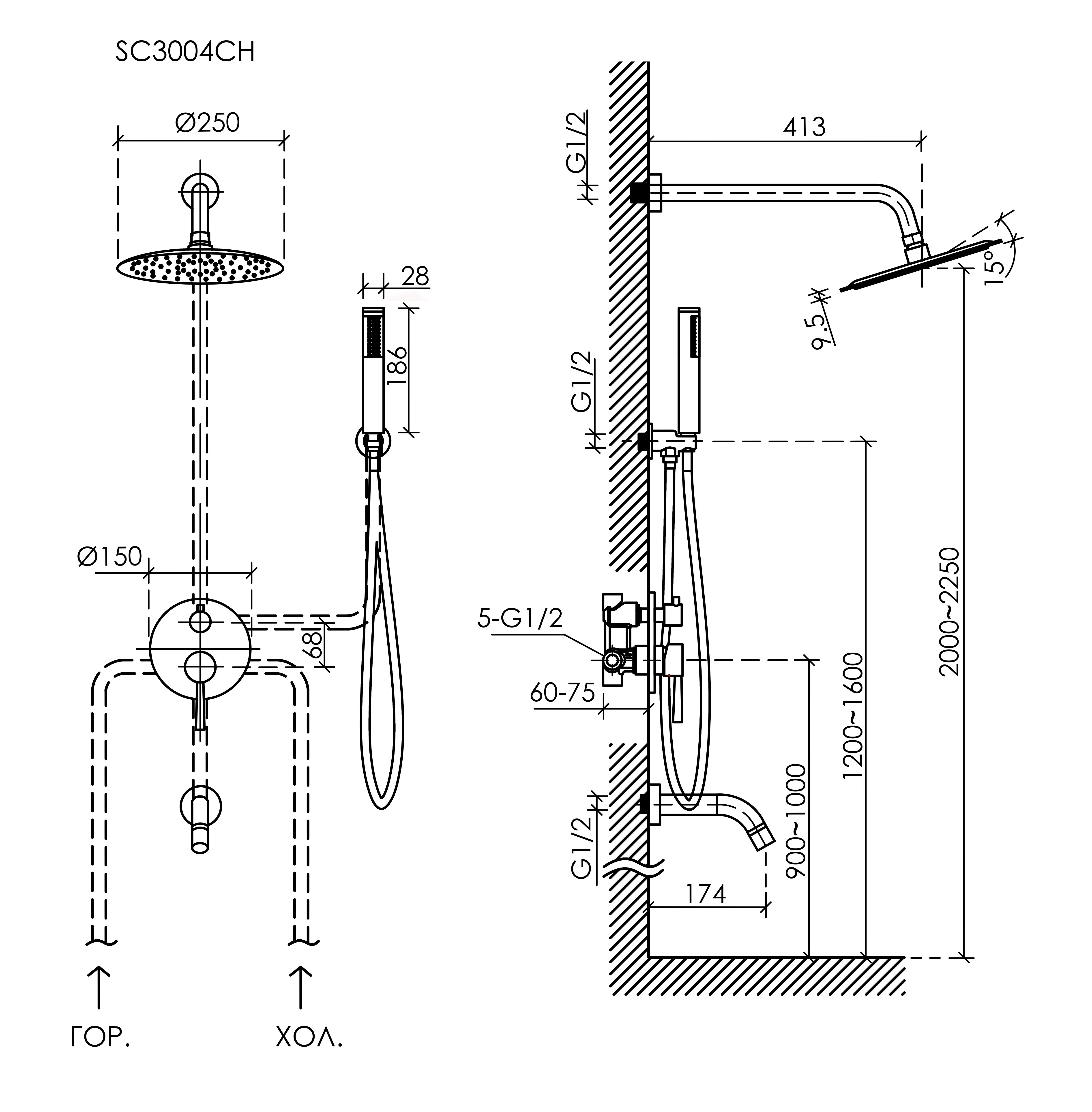 данный параметр выбирается для круглых душей и также он явяется шириной для квадратных или прямоугольных душей
