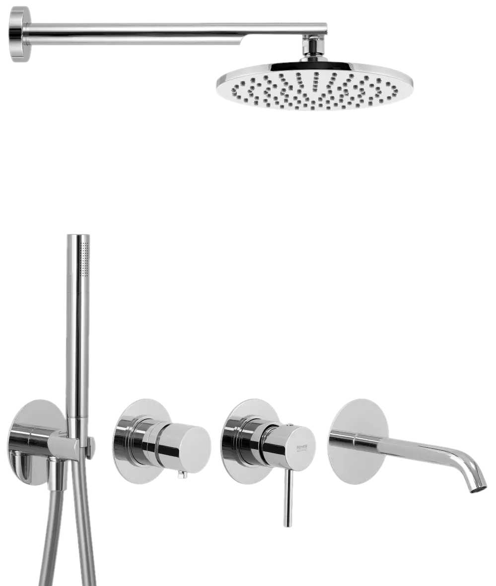 Смеситель для ванны с верхним душем готовый комплект скрытого монтажа (душевой набор и срытая часть в комплекте) x style cr хром remer
