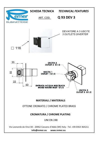 Переключатель на 3 потока (со скрытой частью) q-design cr хром remer
