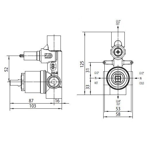 Bossini z00005 встраиваемая часть смесителя для ванны на 2 выхода