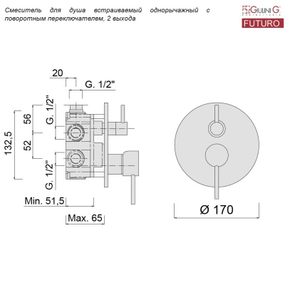Giulini futuro f6564-2 смеситель для душа на 2 потребителя (выхода) цвет хром глянцевый