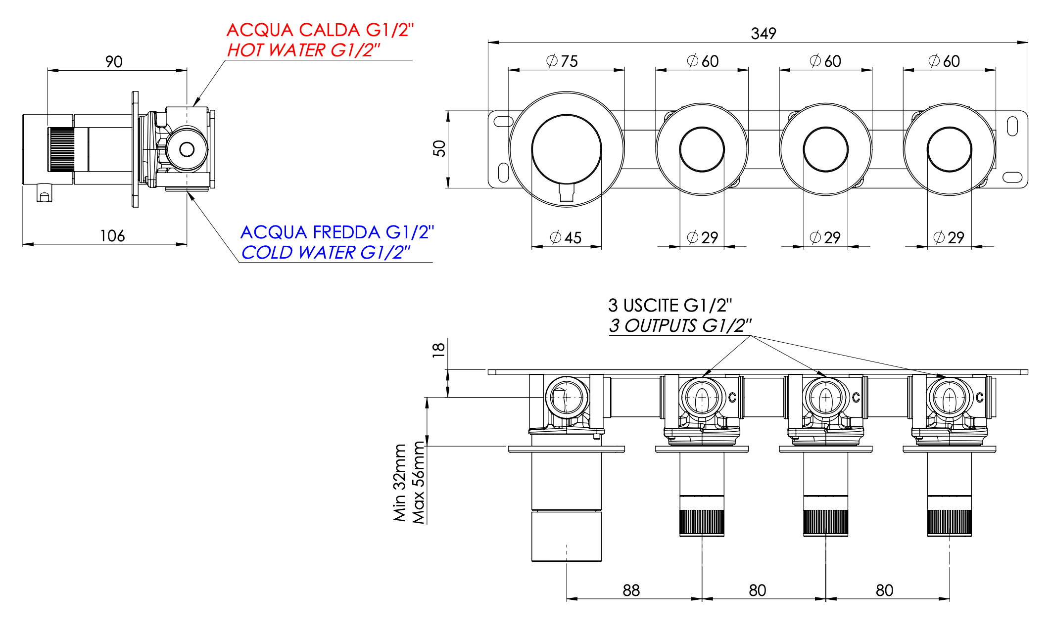 Смеситель для душа remer x style n98d3pxv, сталь
