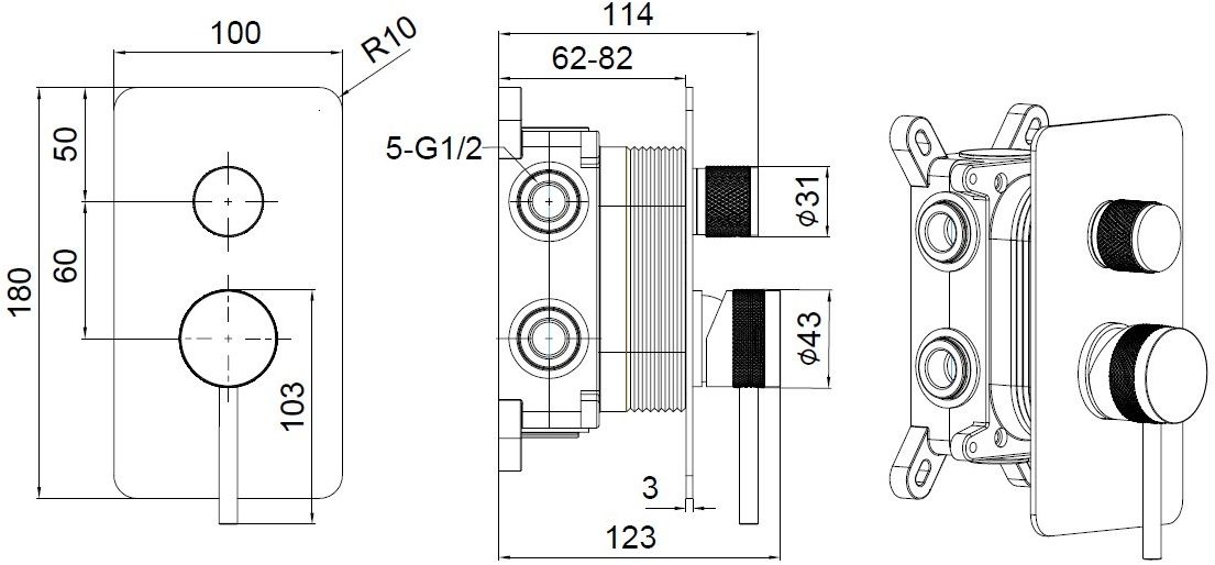 Смеситель для ванны allen brau priority 5.31a11-bn (с внутренней частью, 3 выхода) никель