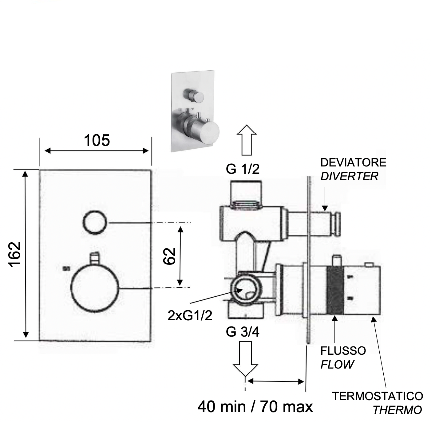 Смеситель термостатический для душа remer x style inox ssxt09q, нержавеющая сталь