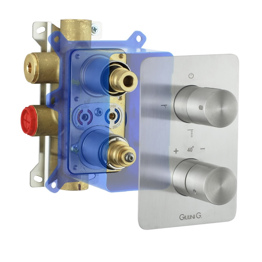 Смеситель термостатического типа для душа Giulini cочетает в себе высокое итальянское качество и современный дизайн. Смеситель изготовлен из прочной латуни (сплава меди и цинка). Область использования разнообразная. Подойдет, для комплектации душевой системы, наполения ванны и т.д. Практичен и удобен в использовании, с точки зрения индивидуальной настройки температуры для каждого члена семьи.
