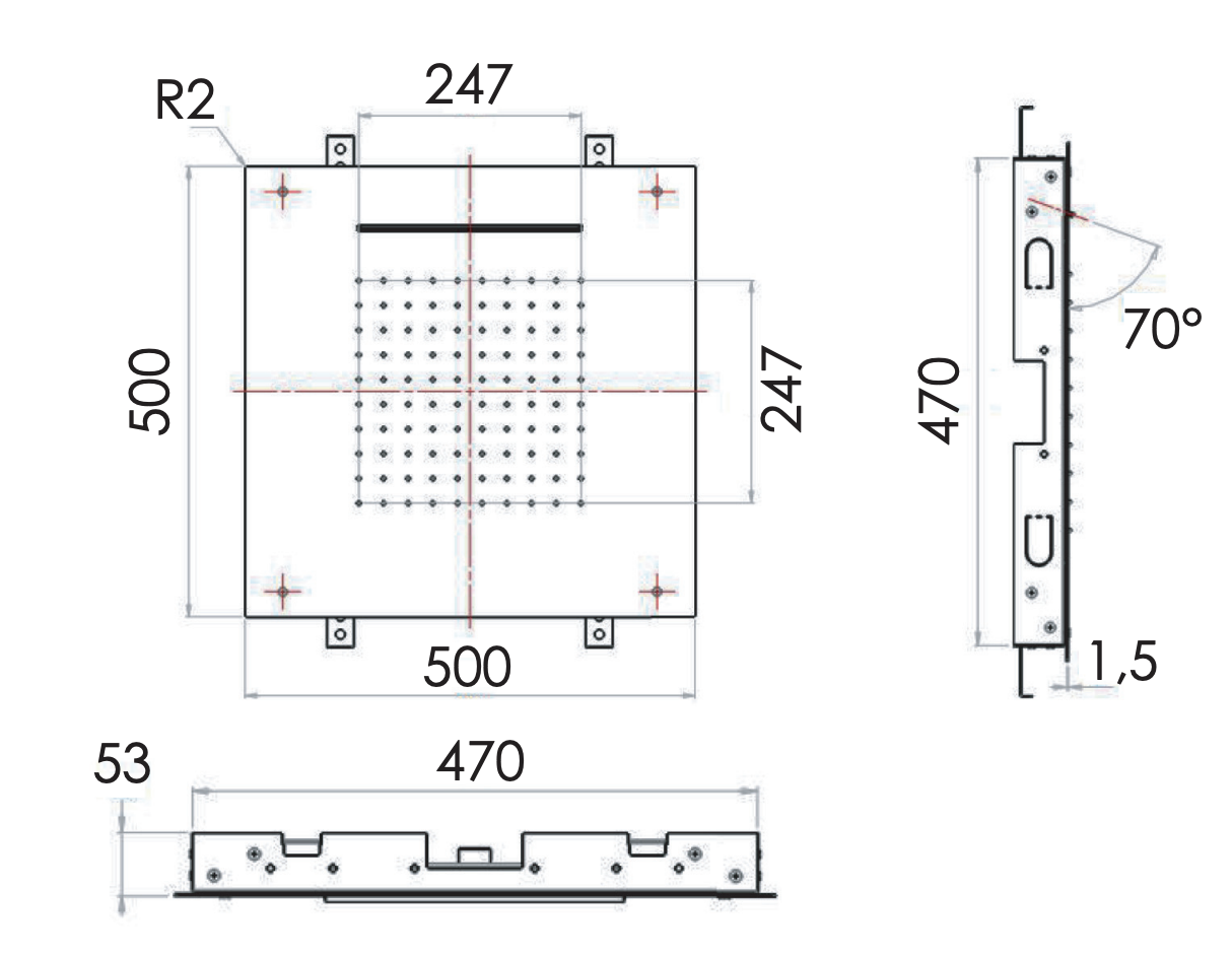 Верхний душ потолочный 50 см remer inox ss357sfs50c