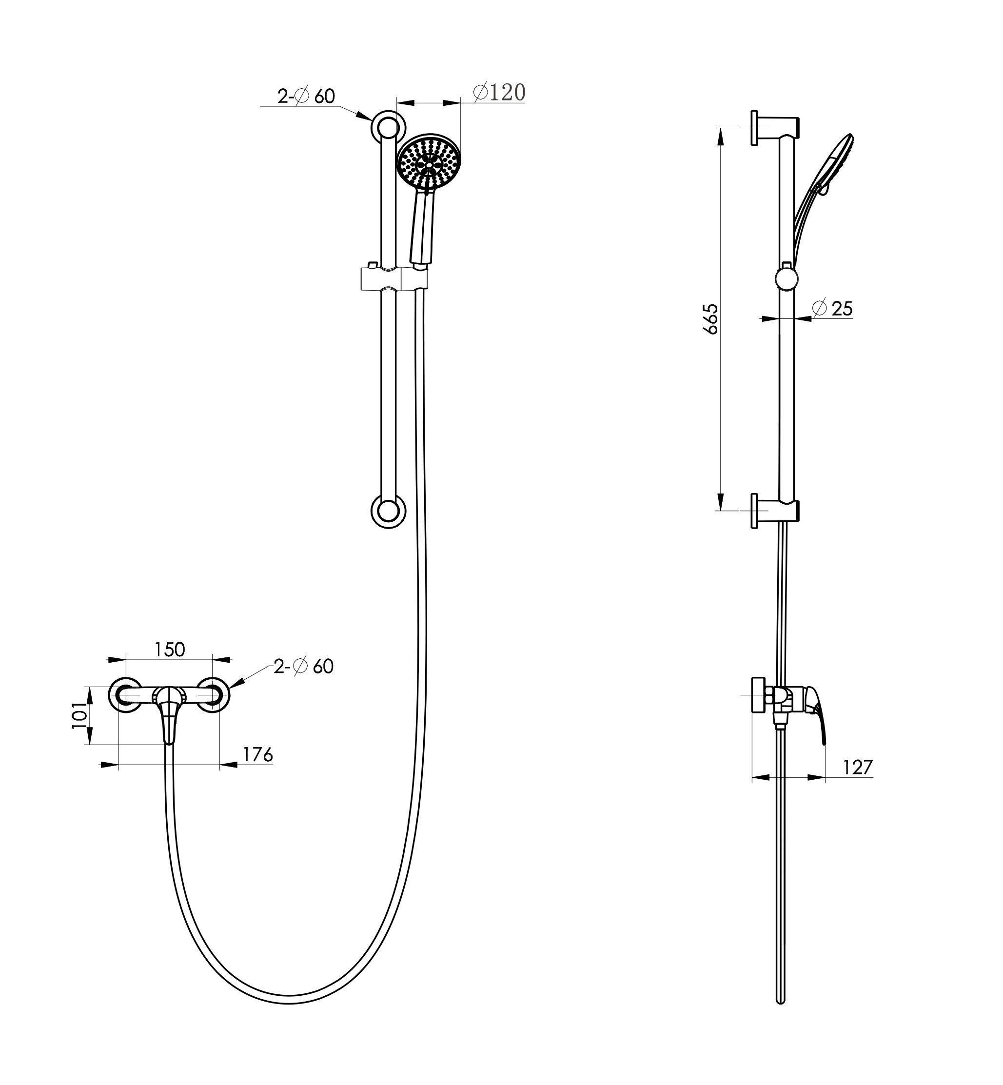Смеситель для душа с гарнитуром wonzon & woghand, темный графит (ww-4570-bgg)