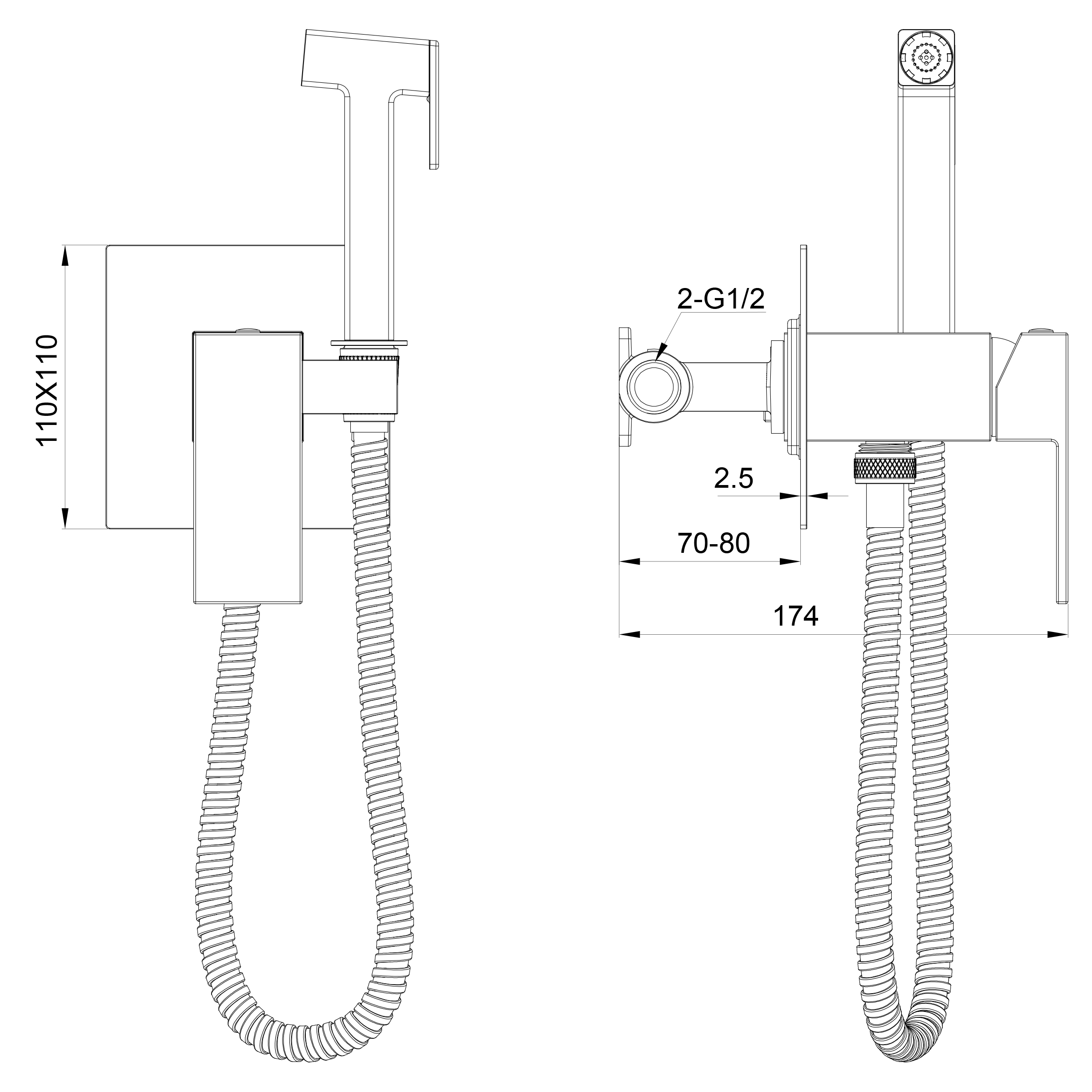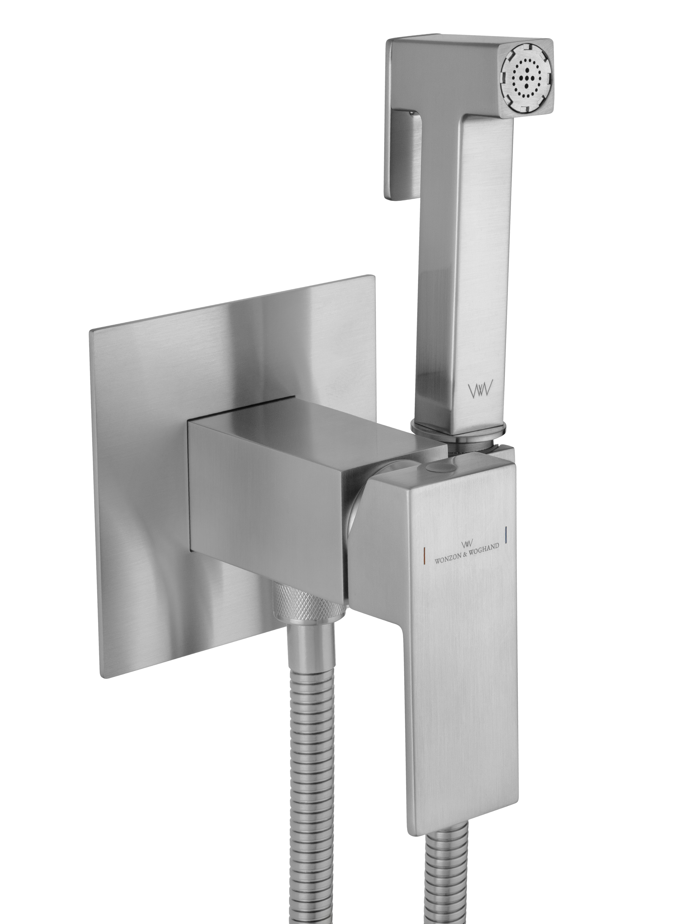Смеситель с гигиеническим душем встраиваемый wonzon & woghand cube, брашированный никель (ww-88829016-bn)