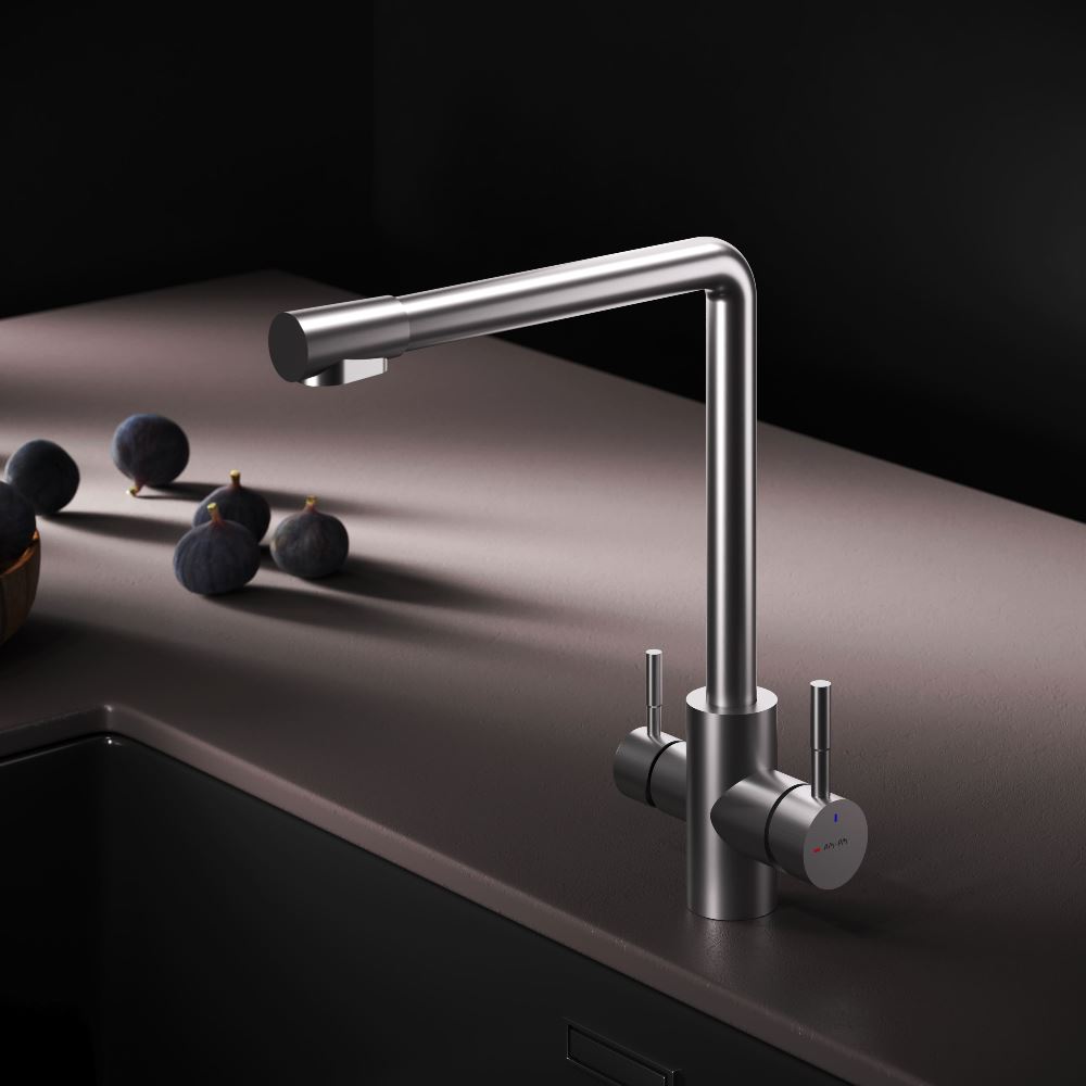 F85B05711 X-Joy S, смеситель для кухни с L-изливом с каналом для питьевой воды, сатин