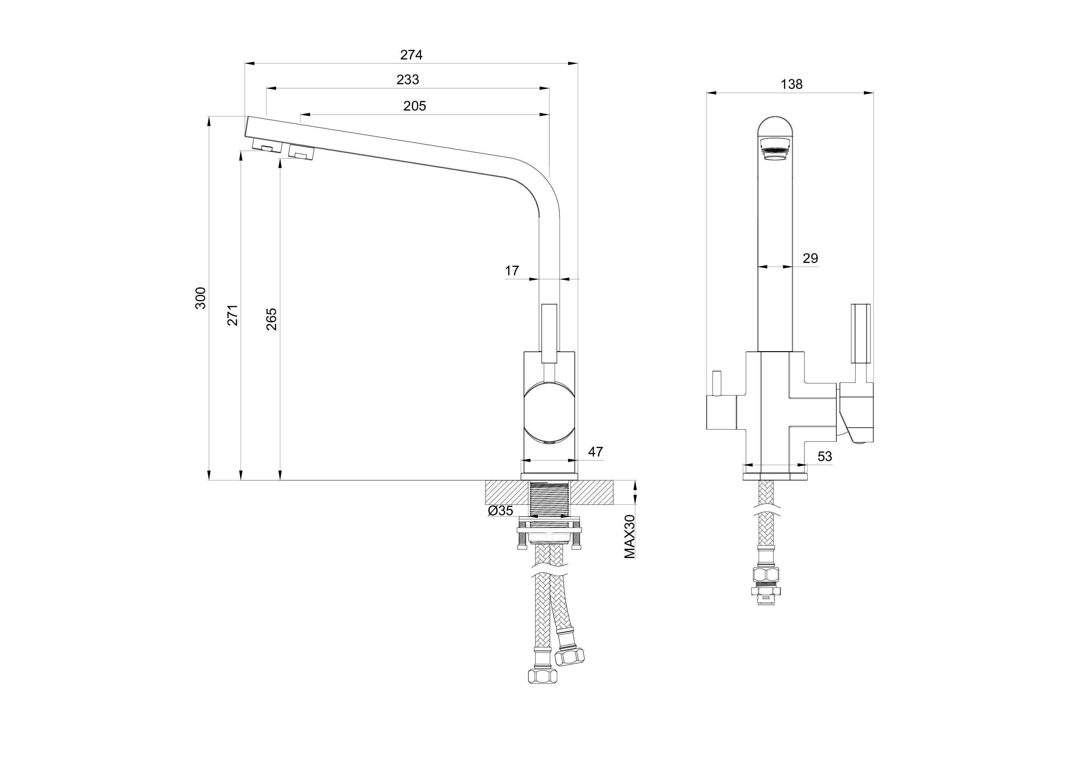 Смеситель для кухни с подключением фильтра wonzon & woghand, темный графит (ww-88458003-bgm)