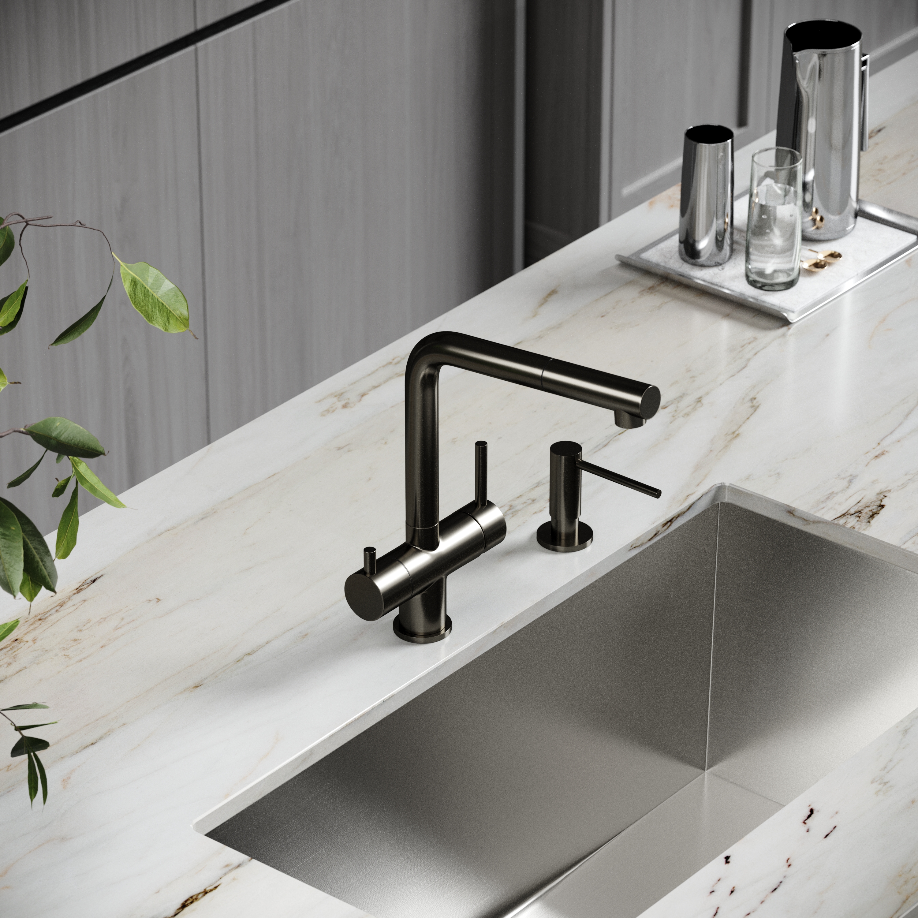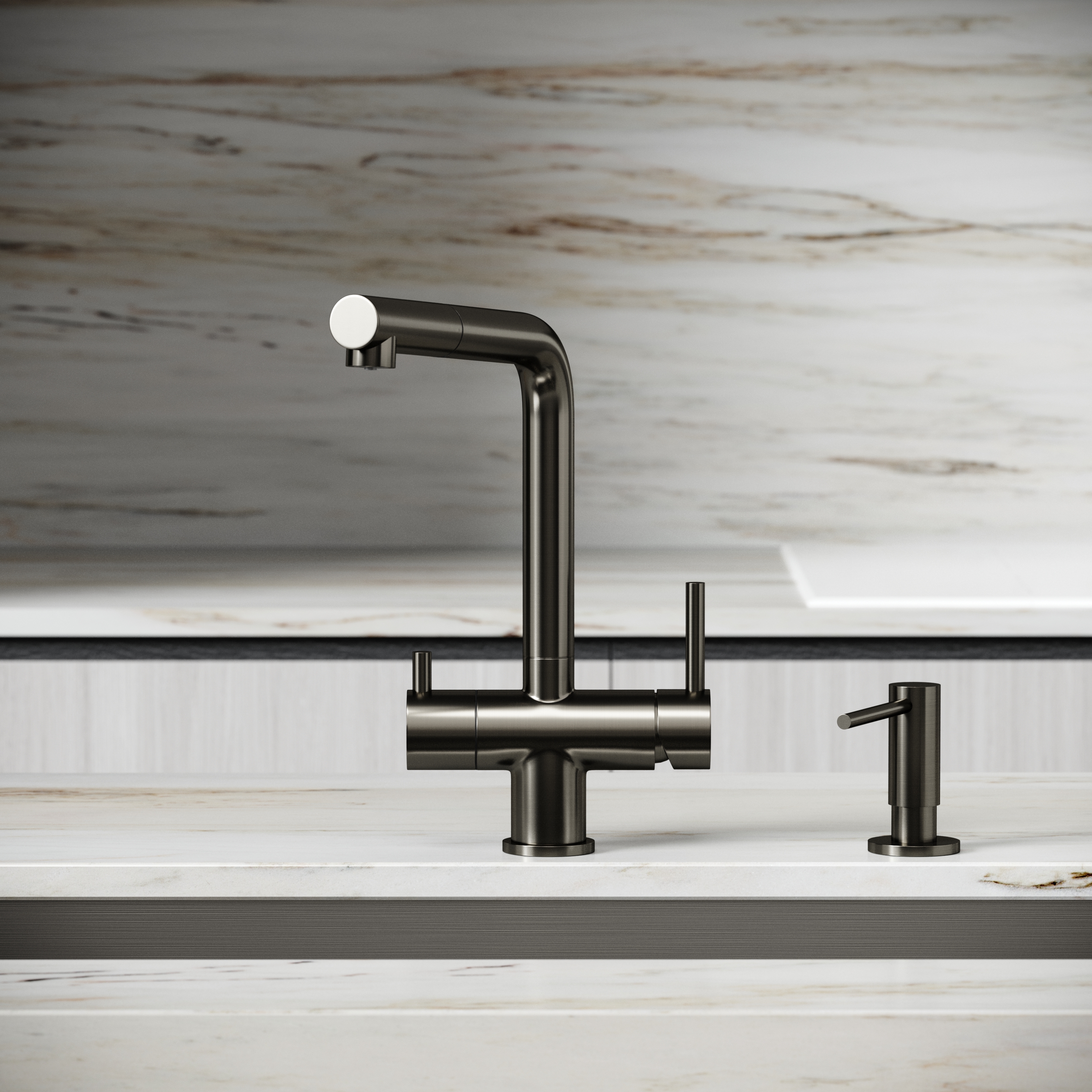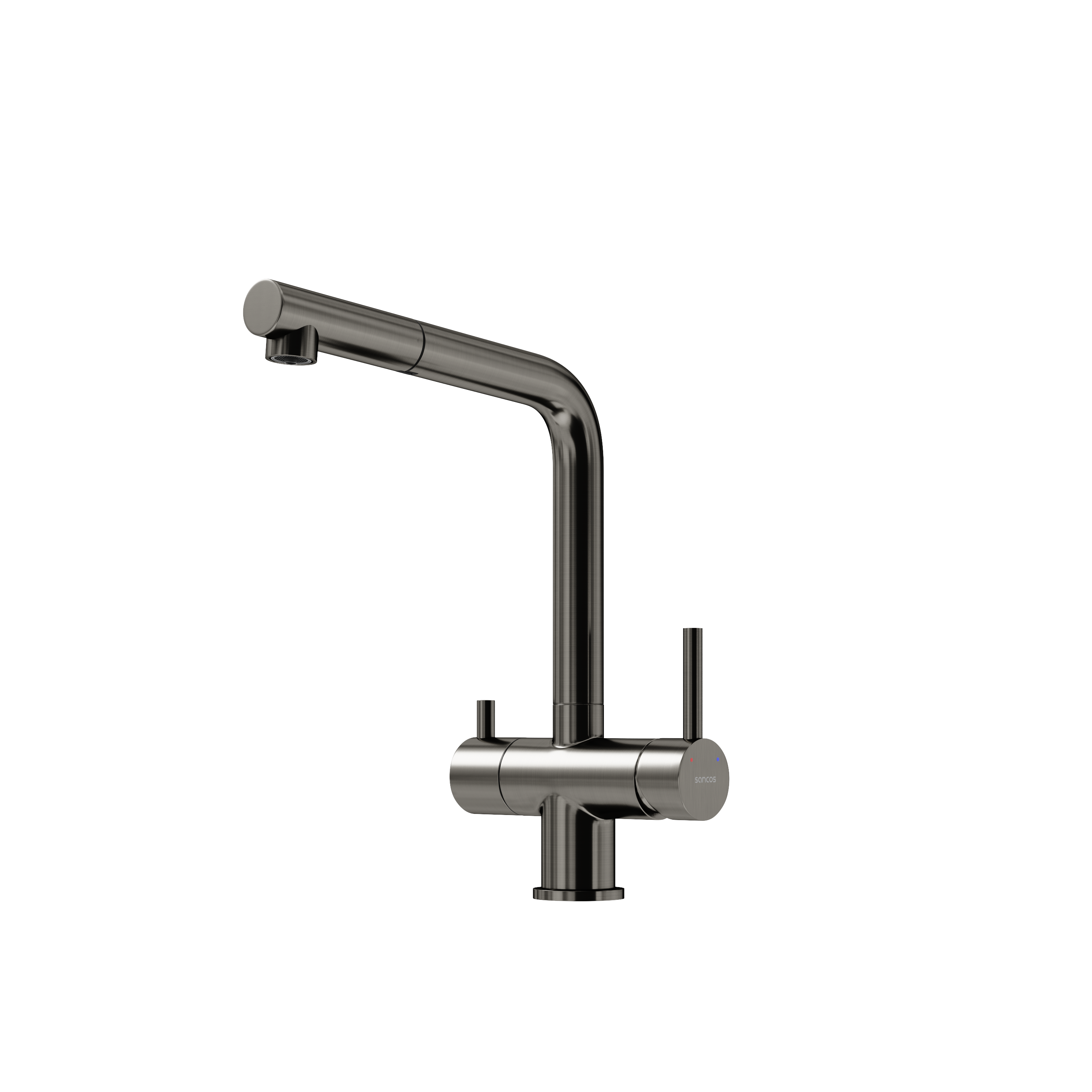 Смеситель для кухни SANCOS Spin с поворотным и вытяжным изливом, c краном для фильтрованной воды, цвет вороненая сталь, арт. SC4015GG