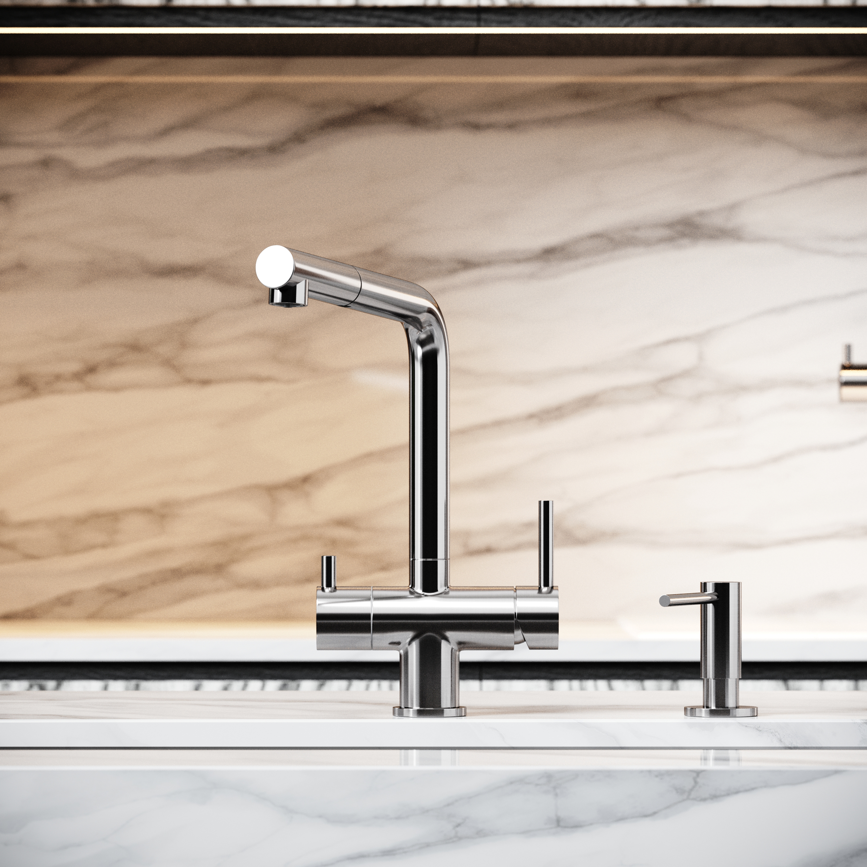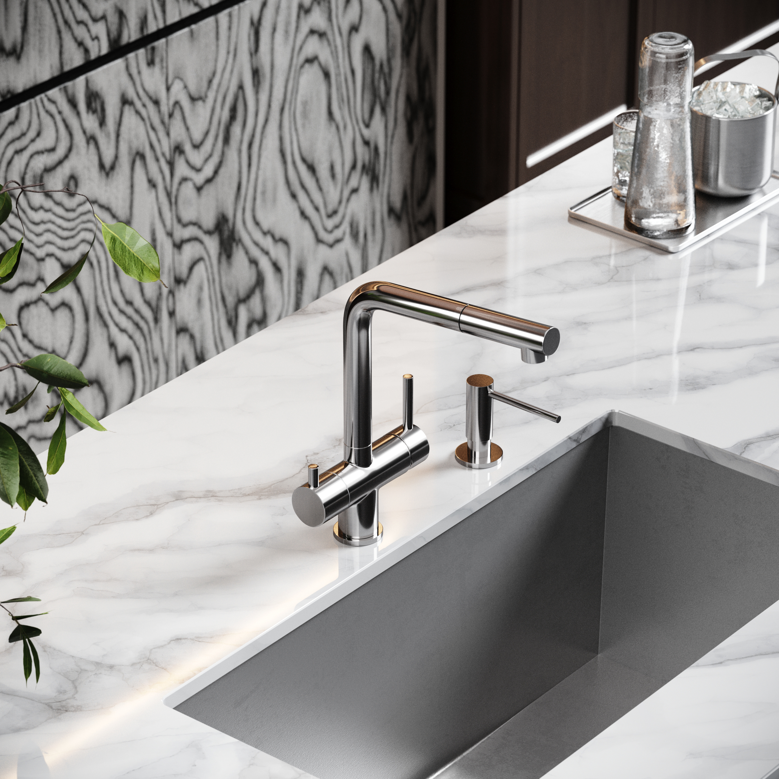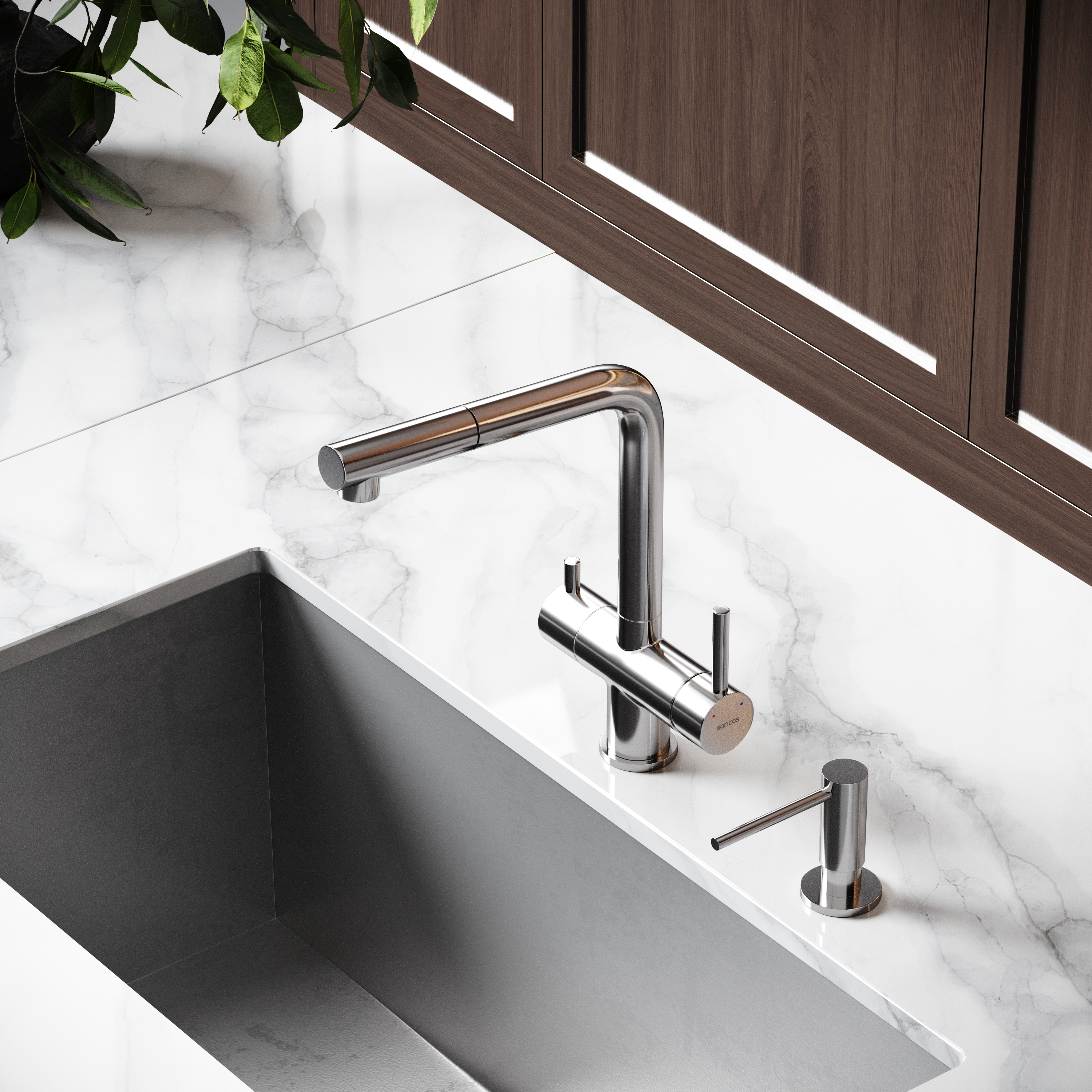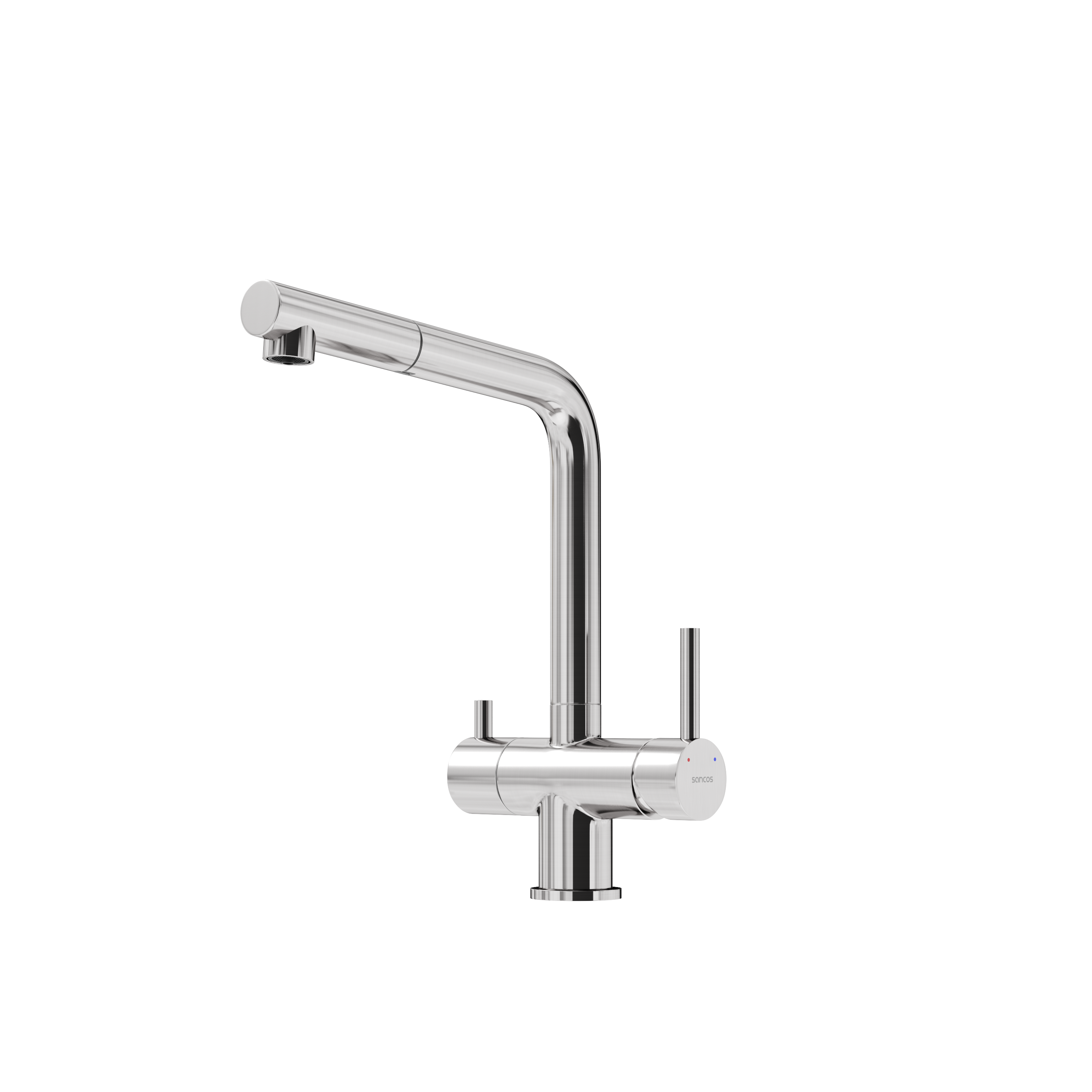 Смеситель для кухни SANCOS Spin с поворотным и вытяжным изливом, c краном для фильтрованной воды, цвет брашированный никель, арт. SC4015BN