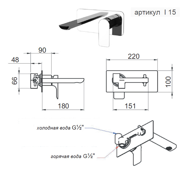 Смеситель для раковины настенный скрытого монтажа излив 18см (скрытая часть в комплекте) infinity cr хром remer