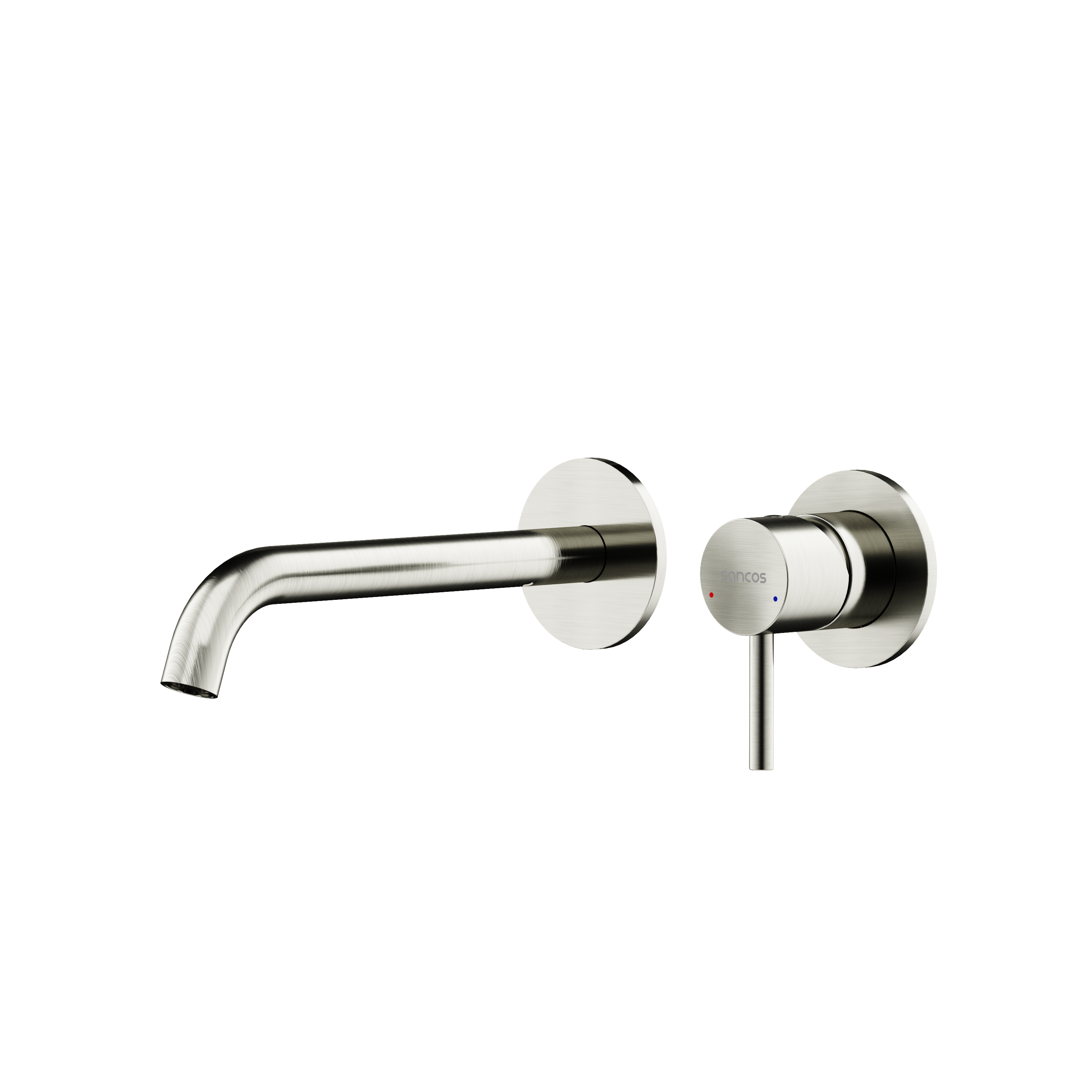 Встраиваемый в стену смеситель для раковины с внутренней частью из латуни; Точная регулировка температуры и напора воды с используемыми картриджами SEDAL (Испания); Мягкий поток воды без разбрызгивания за счёт силиконовых аэраторов Neoperl®; Экстра прочное покрытие PVD; Цвет брашированный никель
