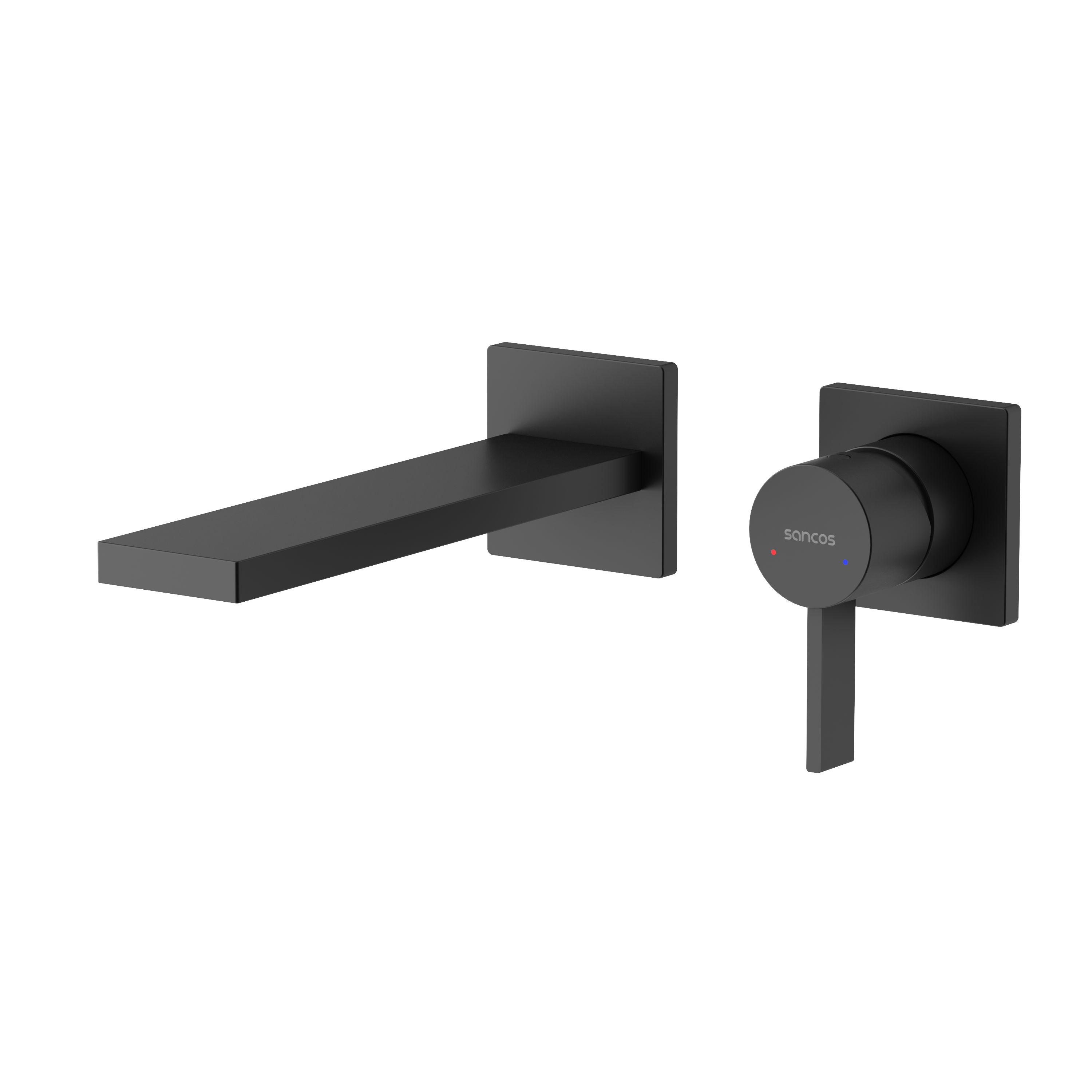 Смеситель для раковины sancos linn c внутренней частью, черный матовый, арт. sc9021mb