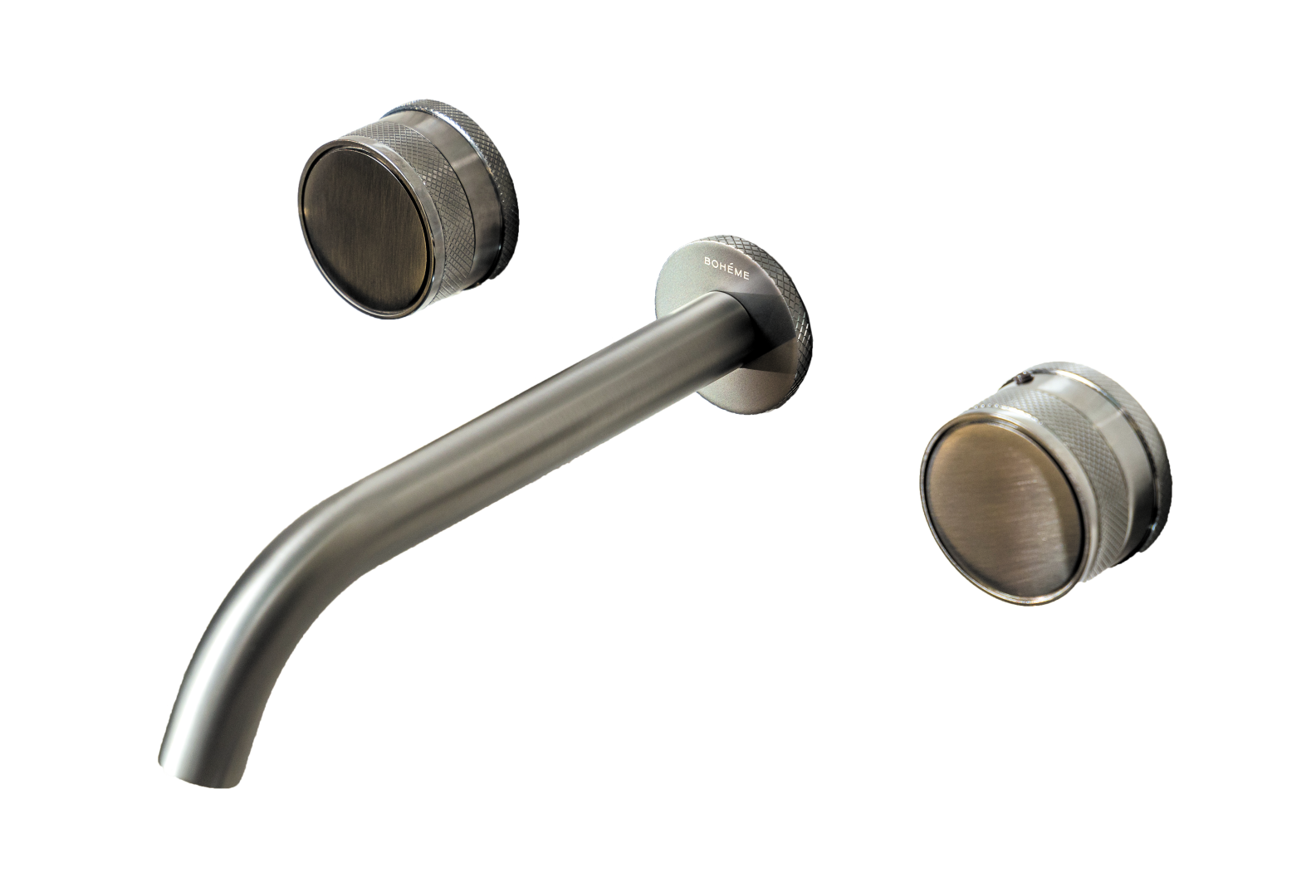 Смеситель для раковины настенный на 3 отверстия boheme prestige 152-2-gm-pr оружейная сталь