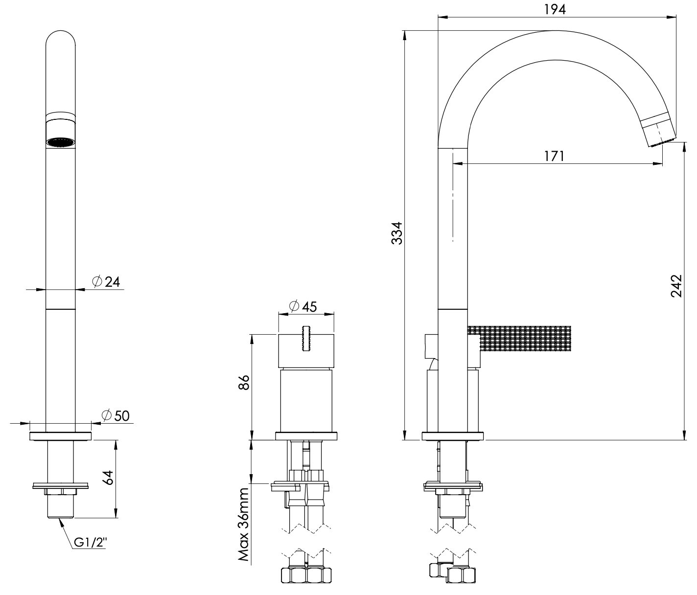 Смеситель для раковины daniel club anc655l15, черный матовый