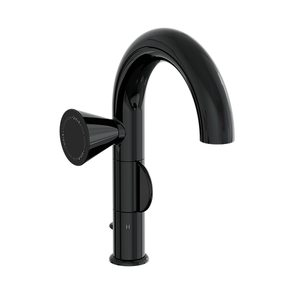 Смеситель для раковины liquid с донным клапаном, левосторонний, черный глянцевый