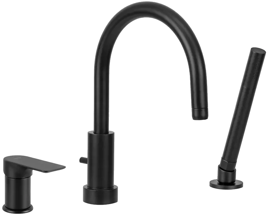 Смеситель для ванны монтаж на борт с душевым набором (на 3 отверстия) infinity no черный матовый remer