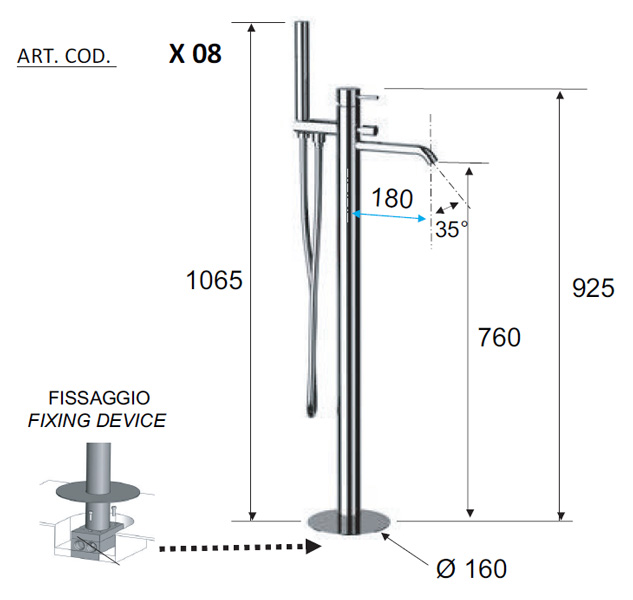 Смеситель для ванны напольный с душевым набором (скрытая часть в комплекте) x style cr хром remer
