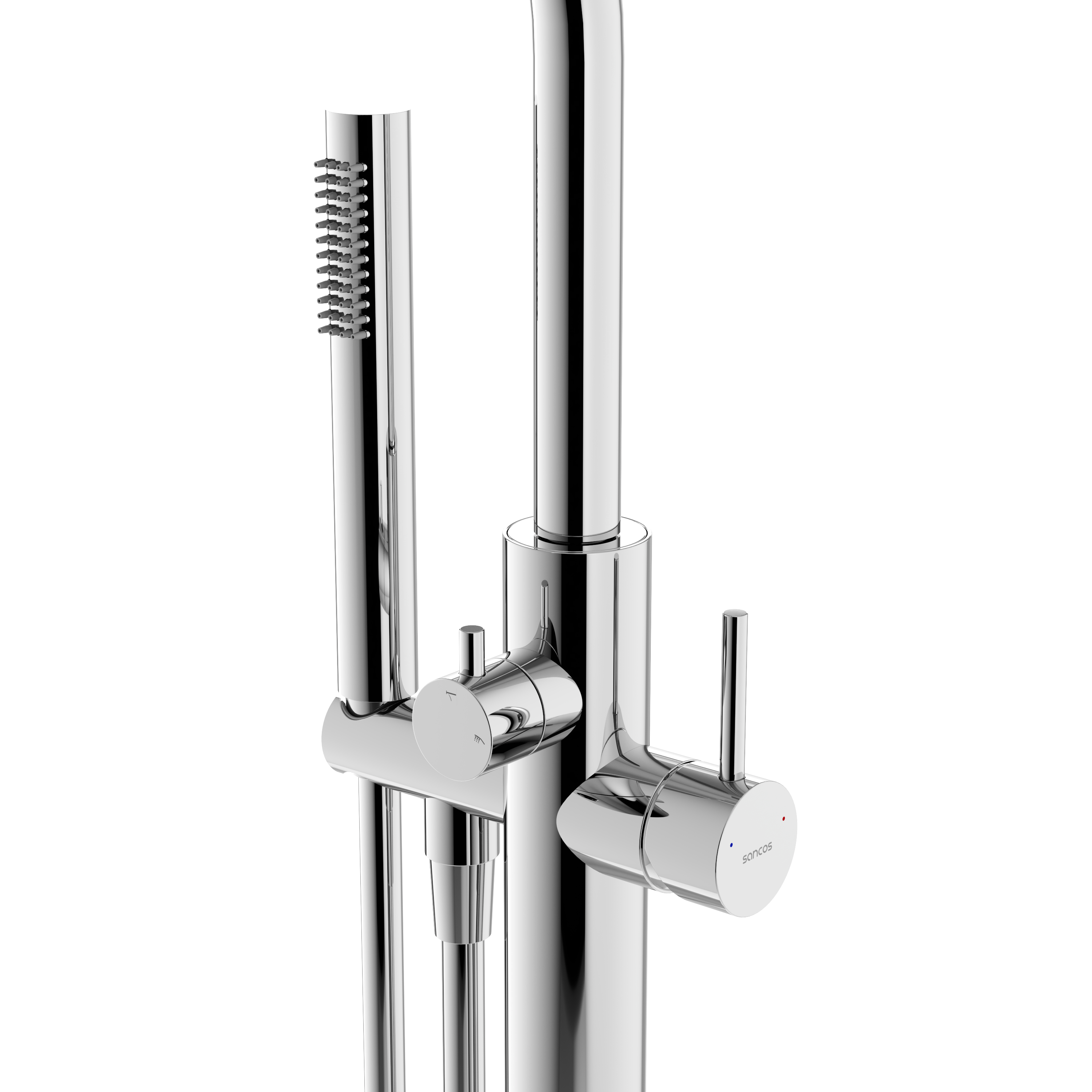Смеситель для ванны напольного монтажа; Надежный корпус из высококачественной латуни; поворотный излив; Картридж CITEC - обеспечивает точную настройку температуры и плавное управление напором; аэратор Neoperl смягчяет воду и препятствует разбрызгиванию; Встроенный девиатор автоматически переключает поток с душа на излив при закрытии воды; ручной душ из латуни; шланг ПВХ с функцией антискручивания, длиной 1,25 м;