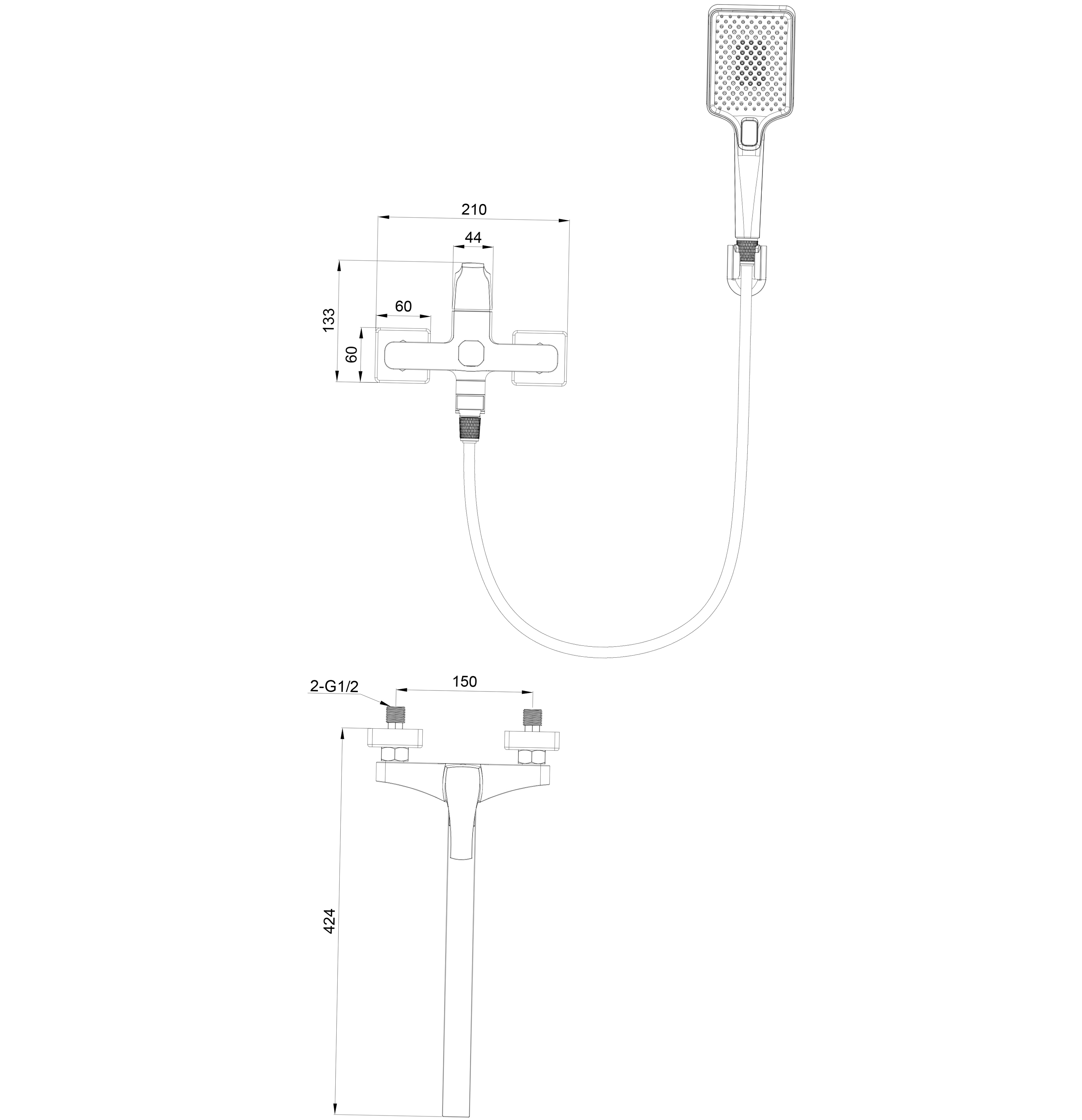Смеситель для ванны wonzon & woghand flex, темный графит (ww-639906-bgm)