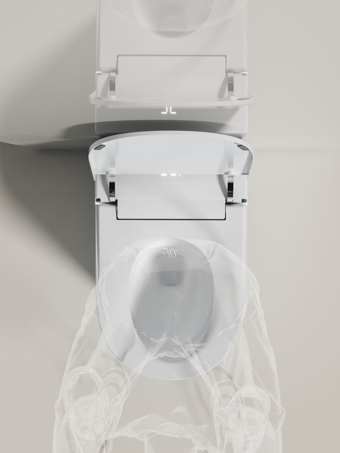 Модель оснащена автоматической крышкой. Она открывается при приближении пользователя и закрывается после использования. Это исключает контакт с поверхностью и повышает гигиеничность.