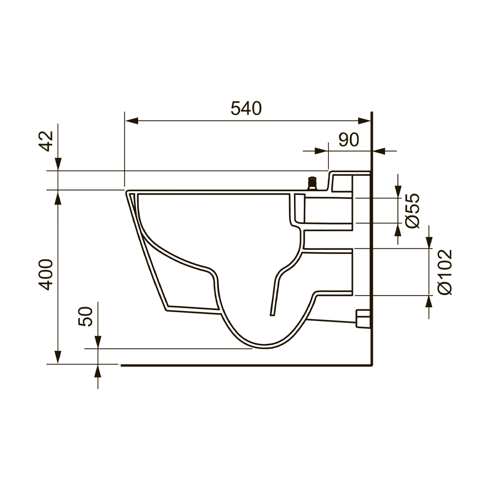 - Безободковая чаша унитаза со встроенной защитой от брызг