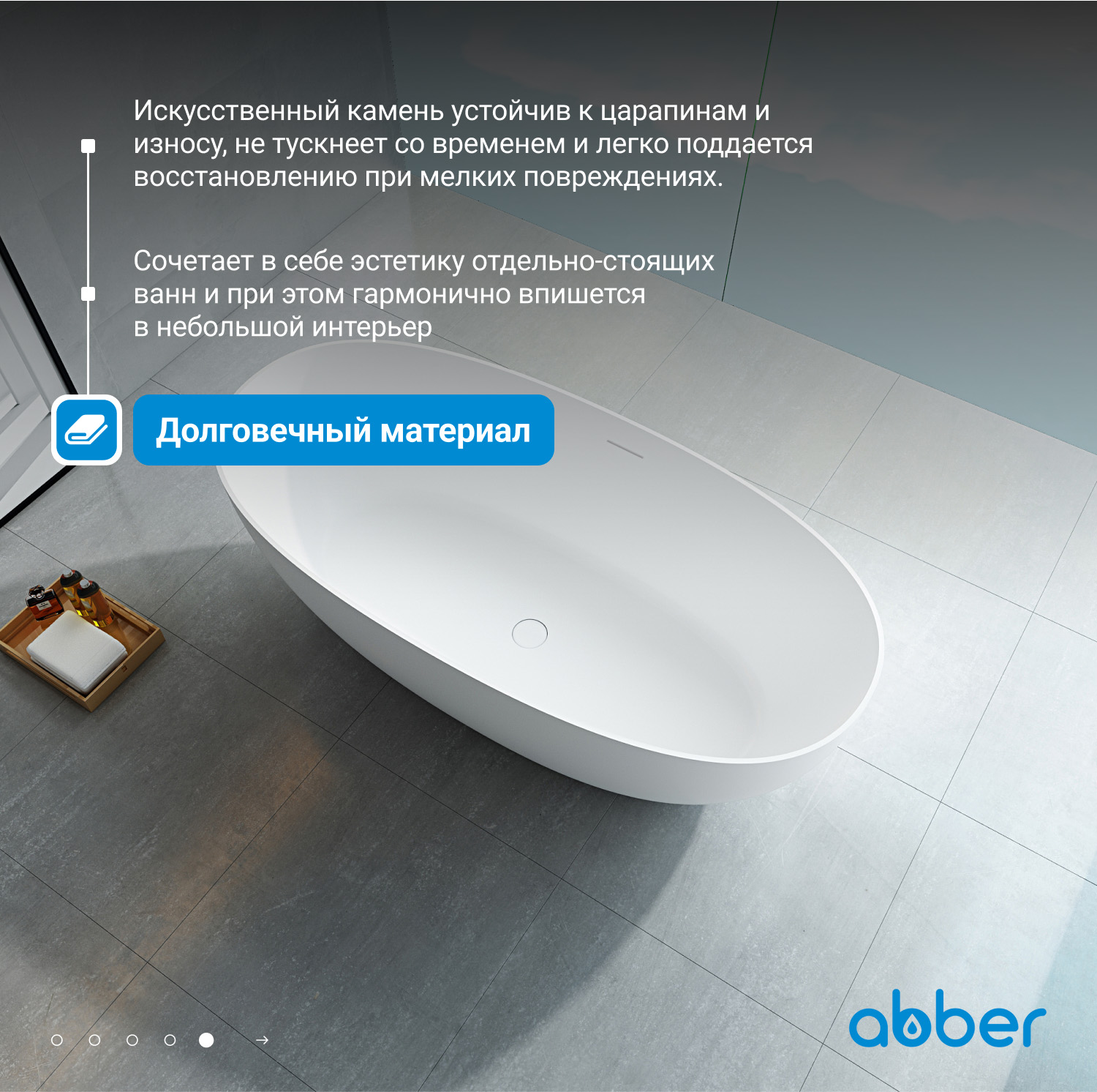 Ванна из искусственного камня ABBER Stein AS9624-1.5 белая матовая