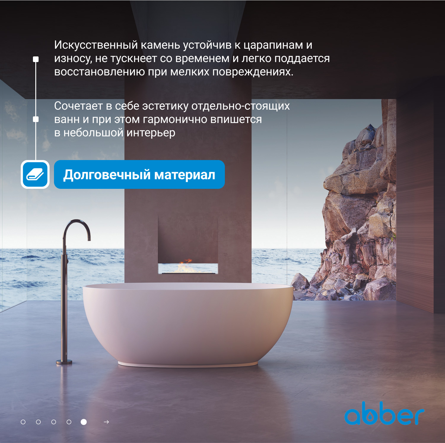 Ванна из искусственного камня ABBER Stein AS9641-1.3 белая матовая