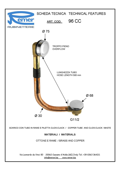 Cлив-перелив для ванны латунный click-clack cr хром remer